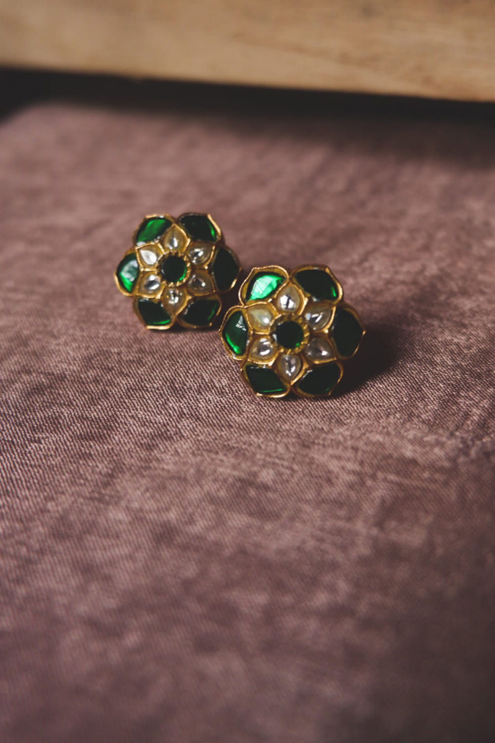 Green floral semi-precious stone studs