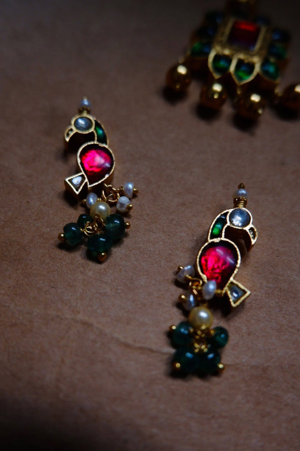 Multicolour bird semi-precious stone and pearl studded earrings