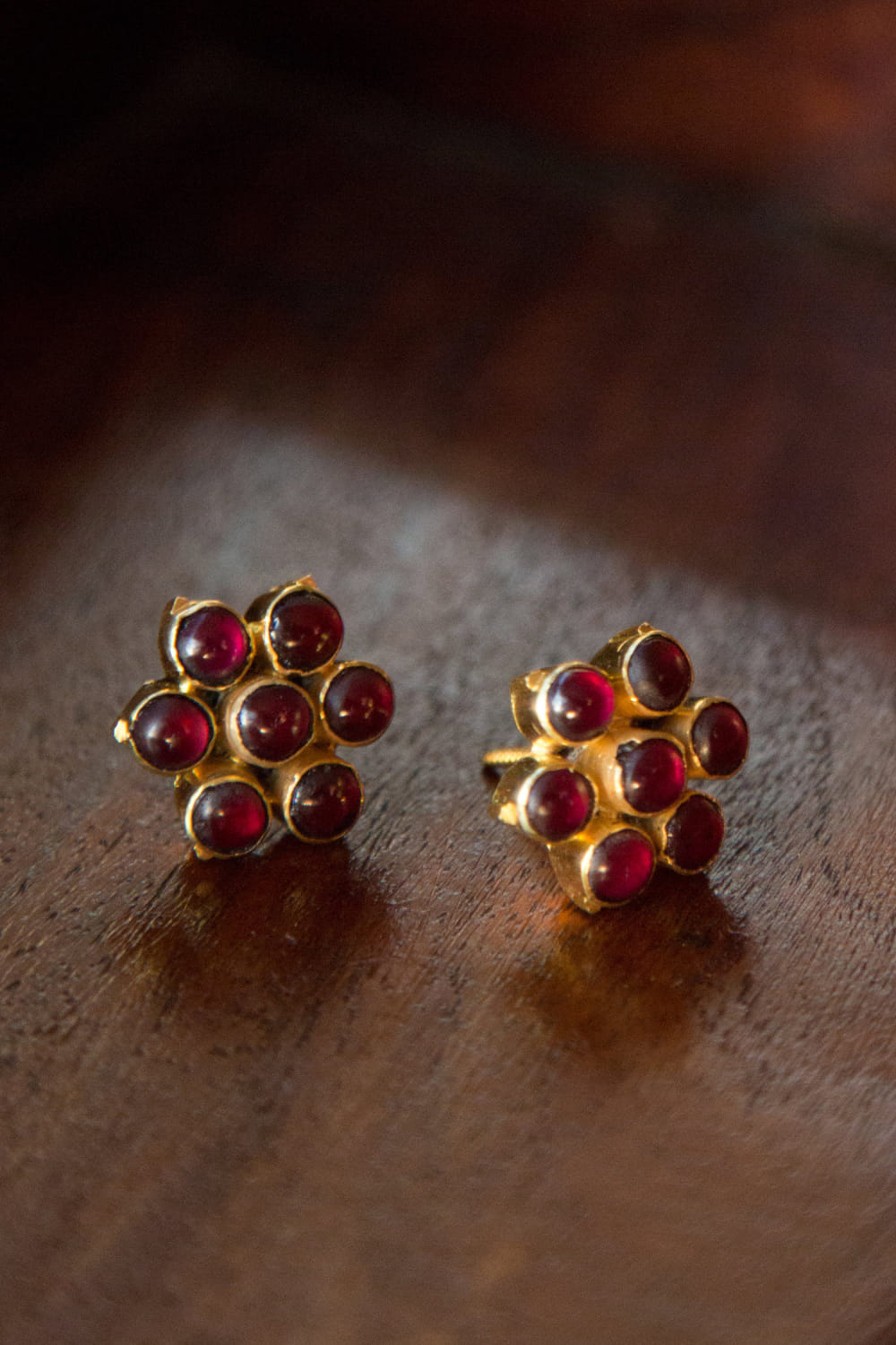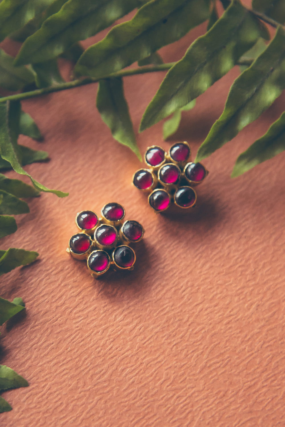 Red floral kemp stone embellished studs