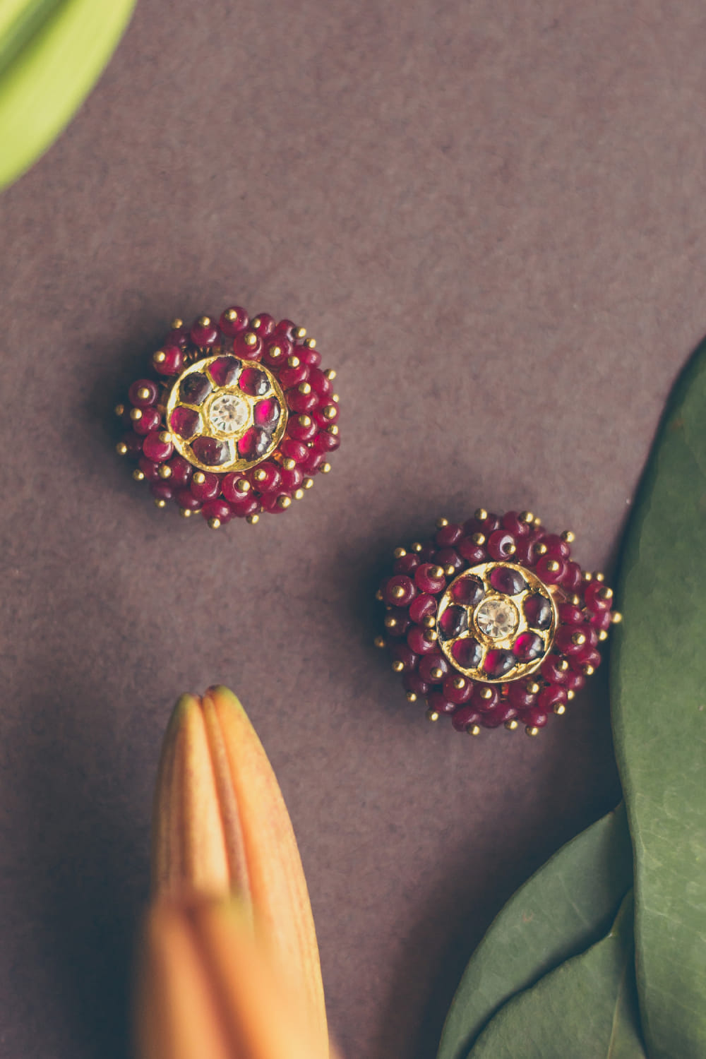 Red kemp stone and bead studs