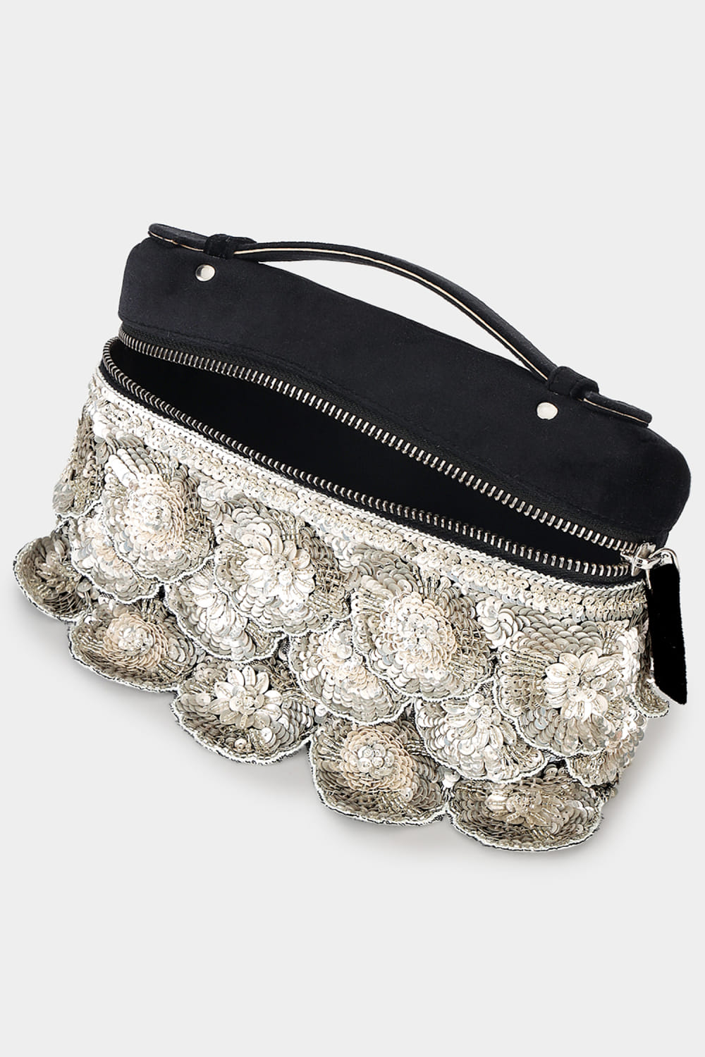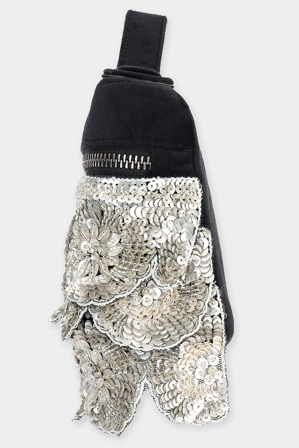 Black sequin embroidered pouch bag