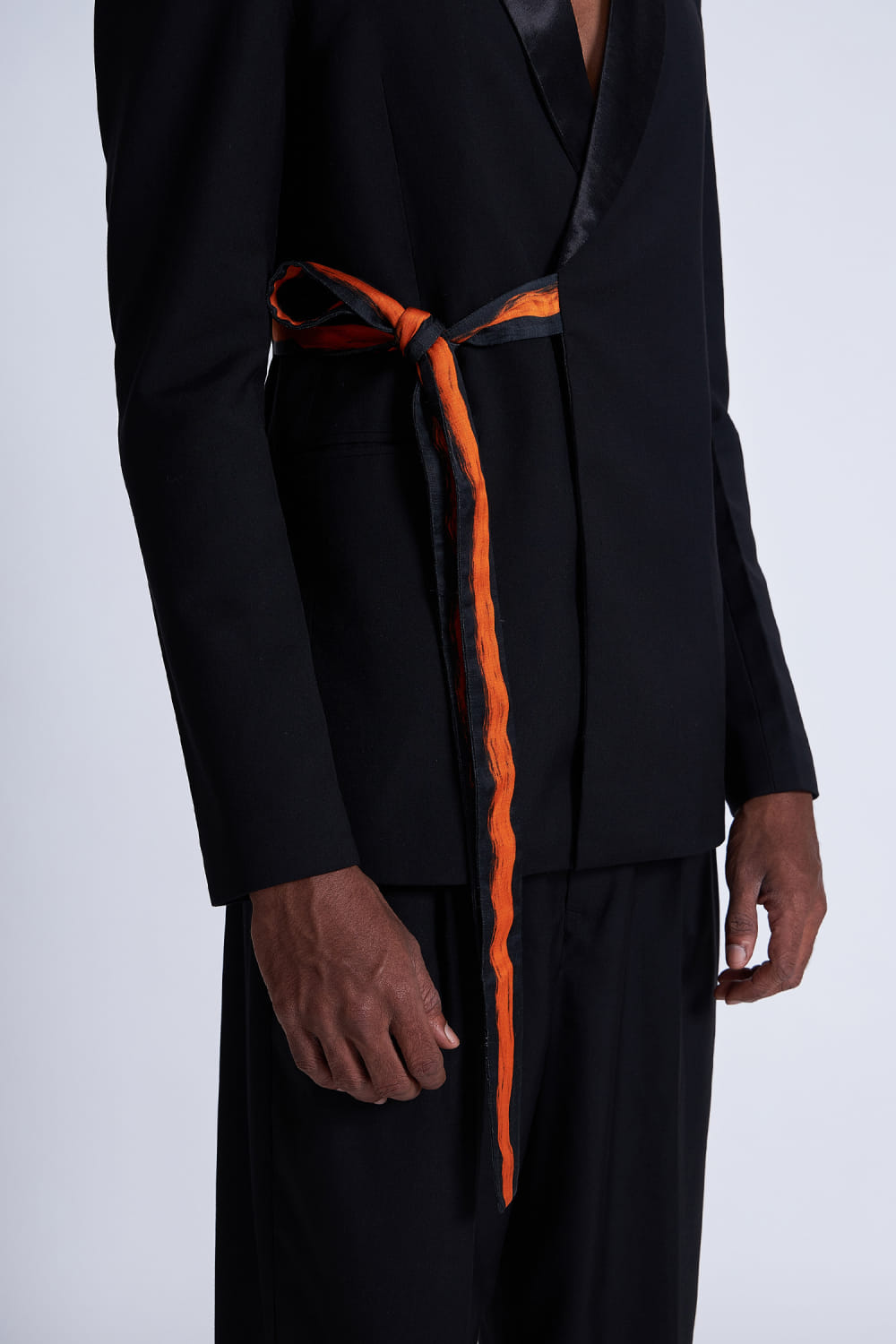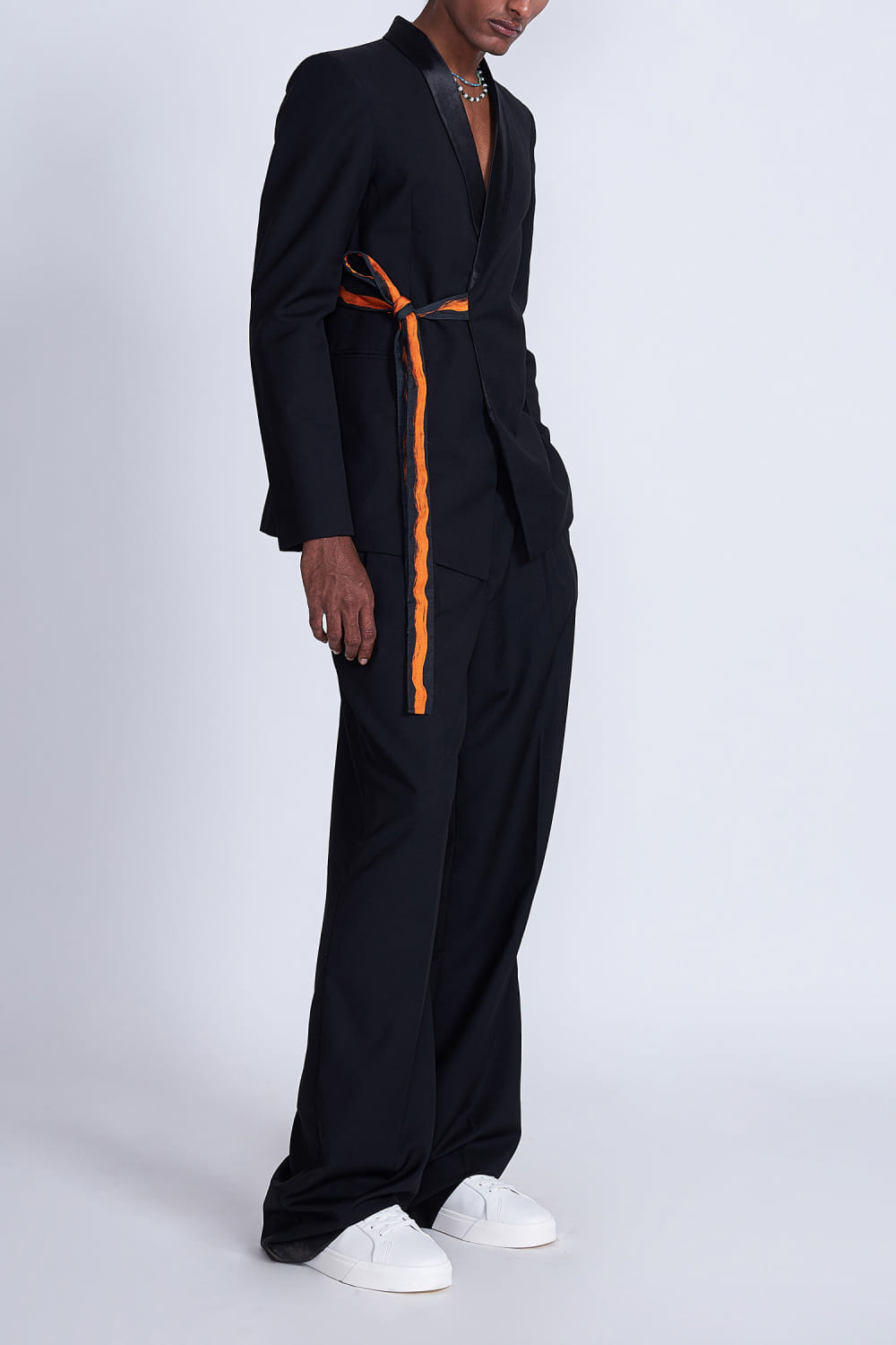 Advait crafts this dapper boxy blazer with padded shoulders and distinctive tie-up detailing, adding a touch of contemporary flair to your wardrobe. Complete the ensemble with tailored trousers or jeans and polished dress shoes or loafers. The pants here are shown for styling purposes only.