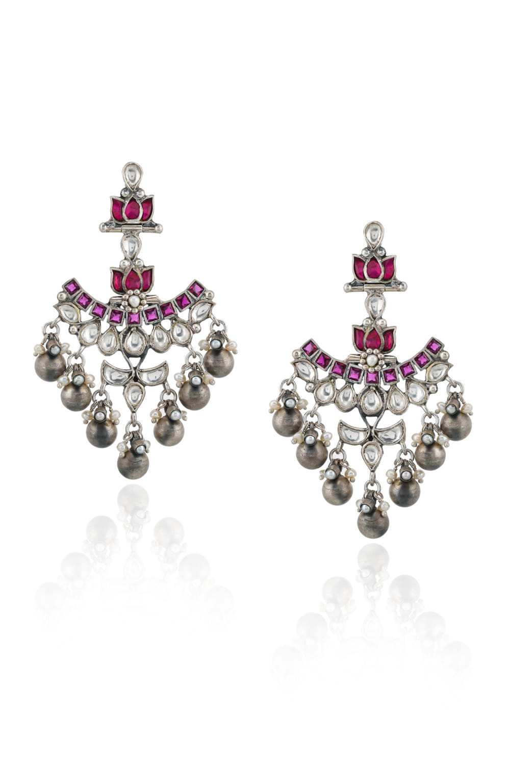 Silver kundan embellished earrings