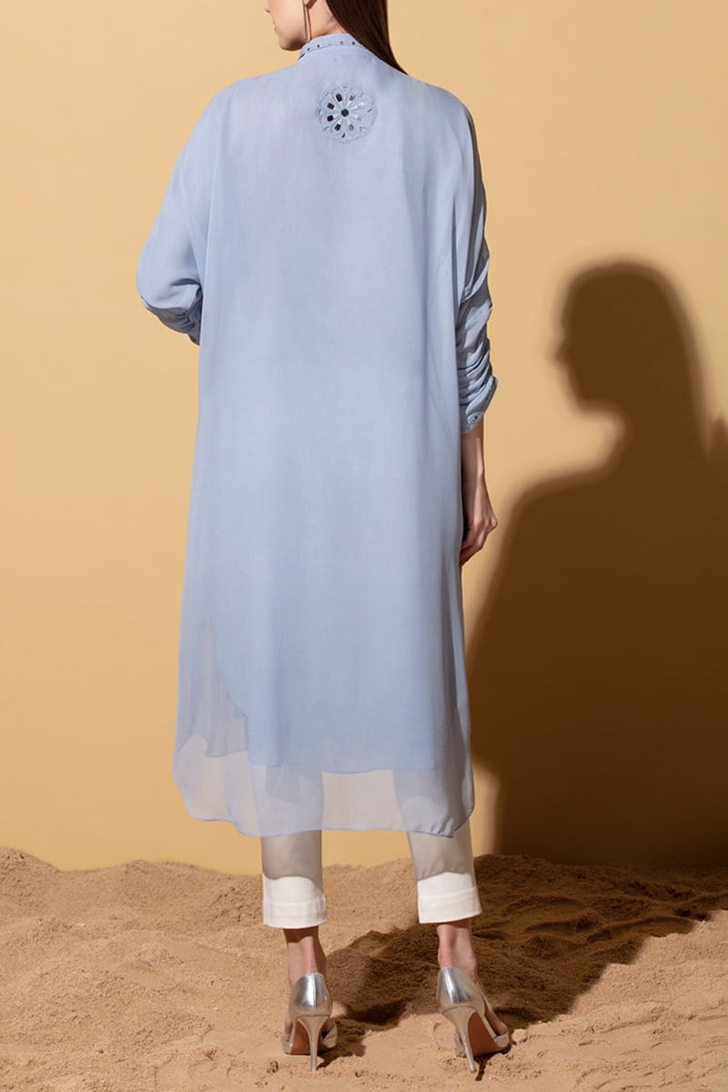 Stone blue georgette tunic and pants