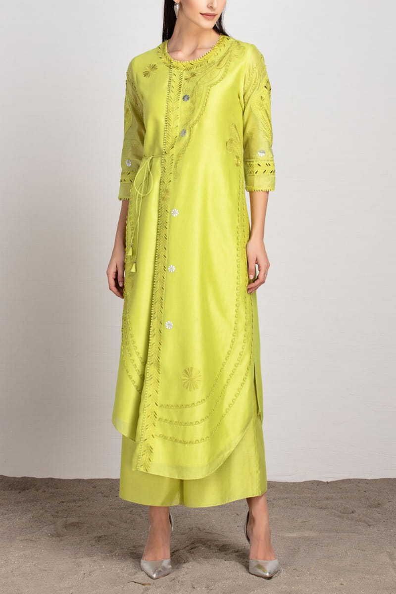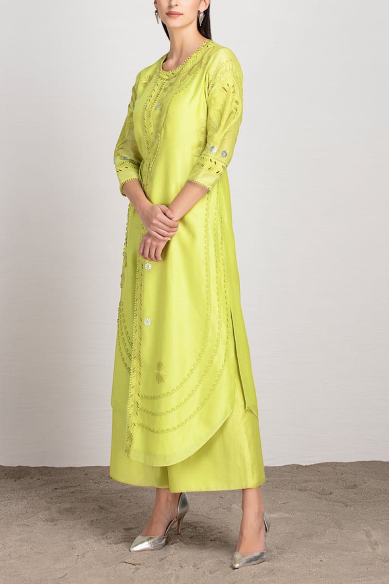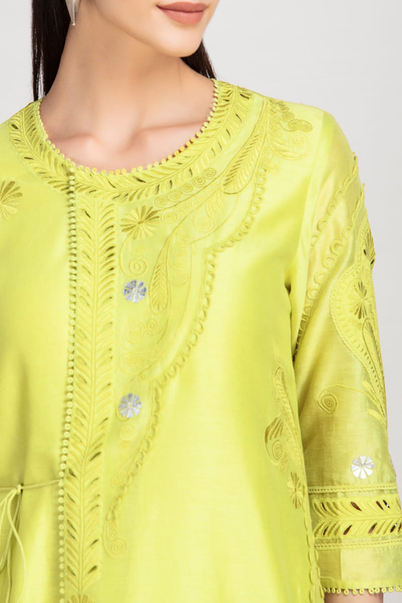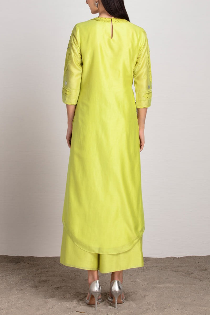 Lime chanderi tunic set