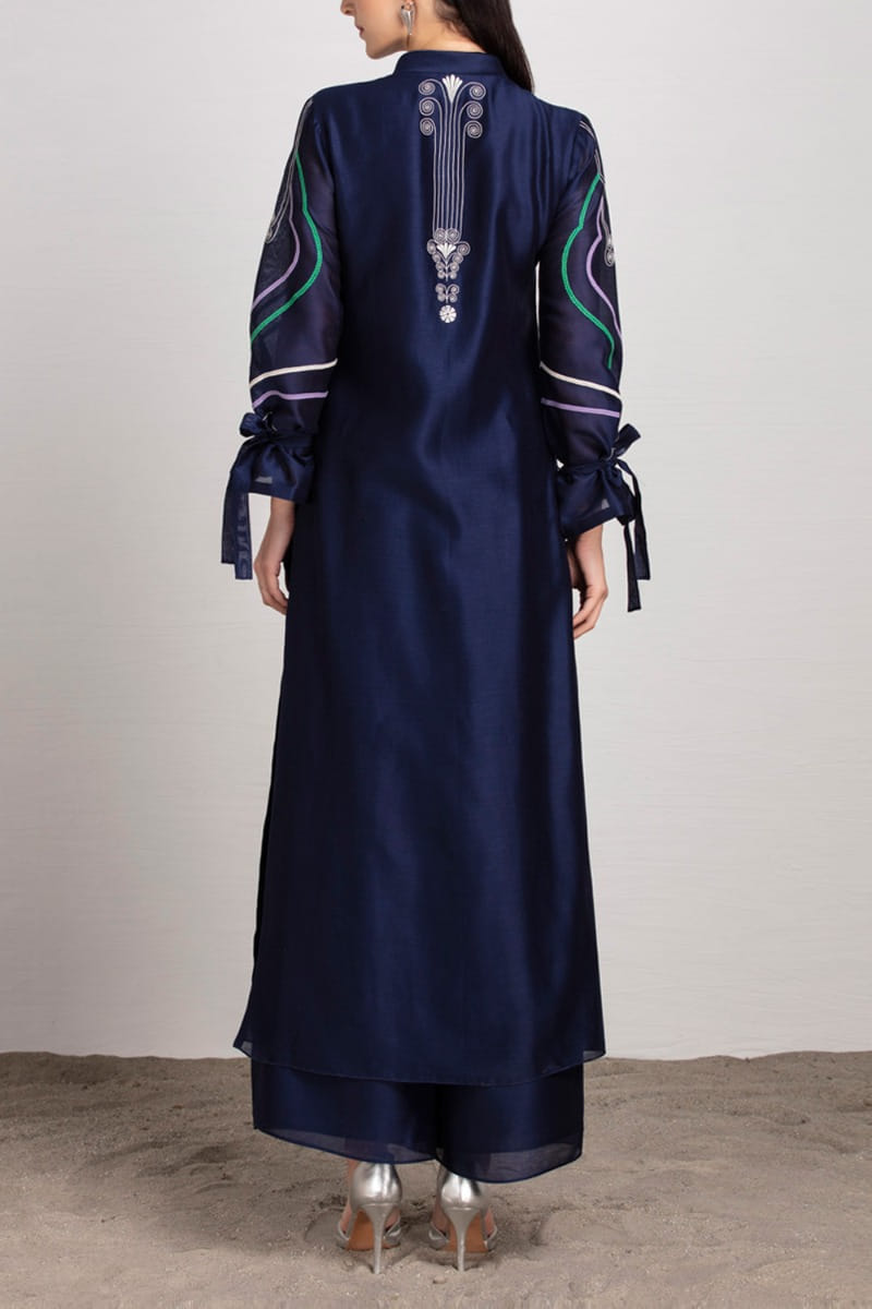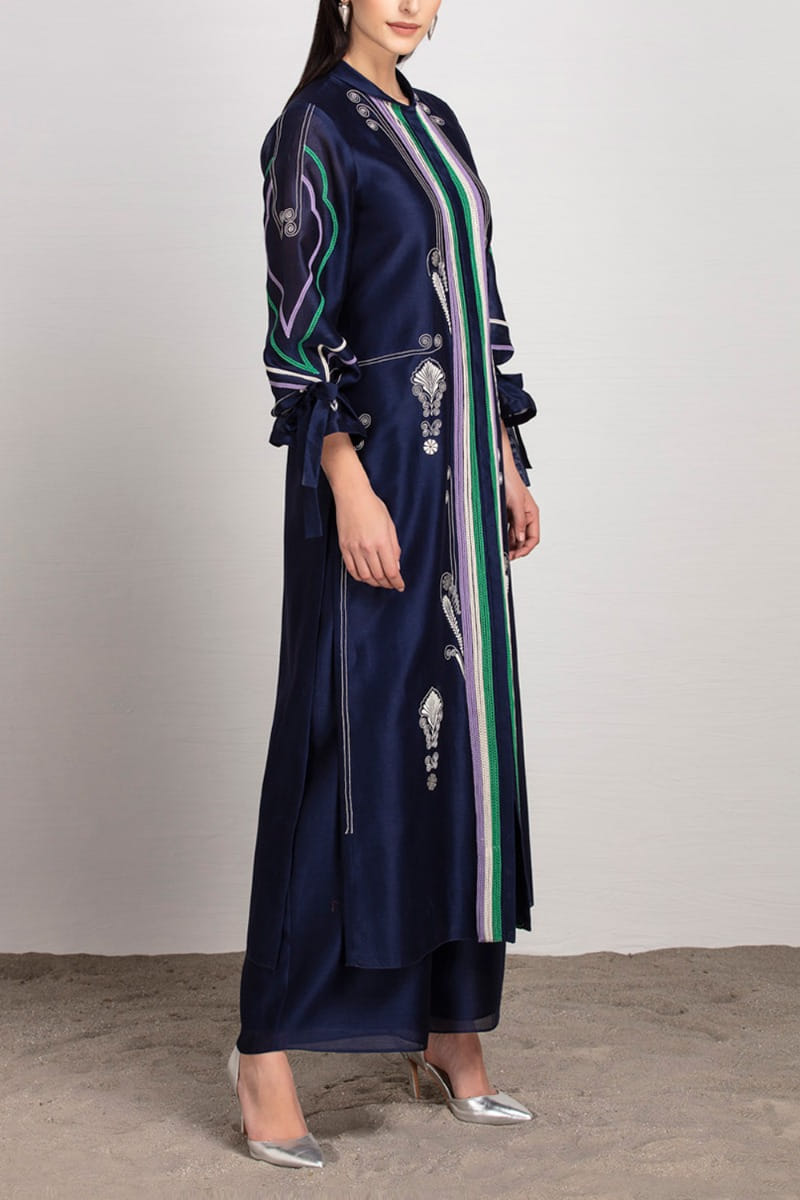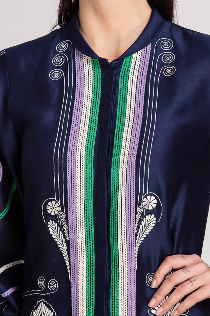 Navy blue embroidered jacket set