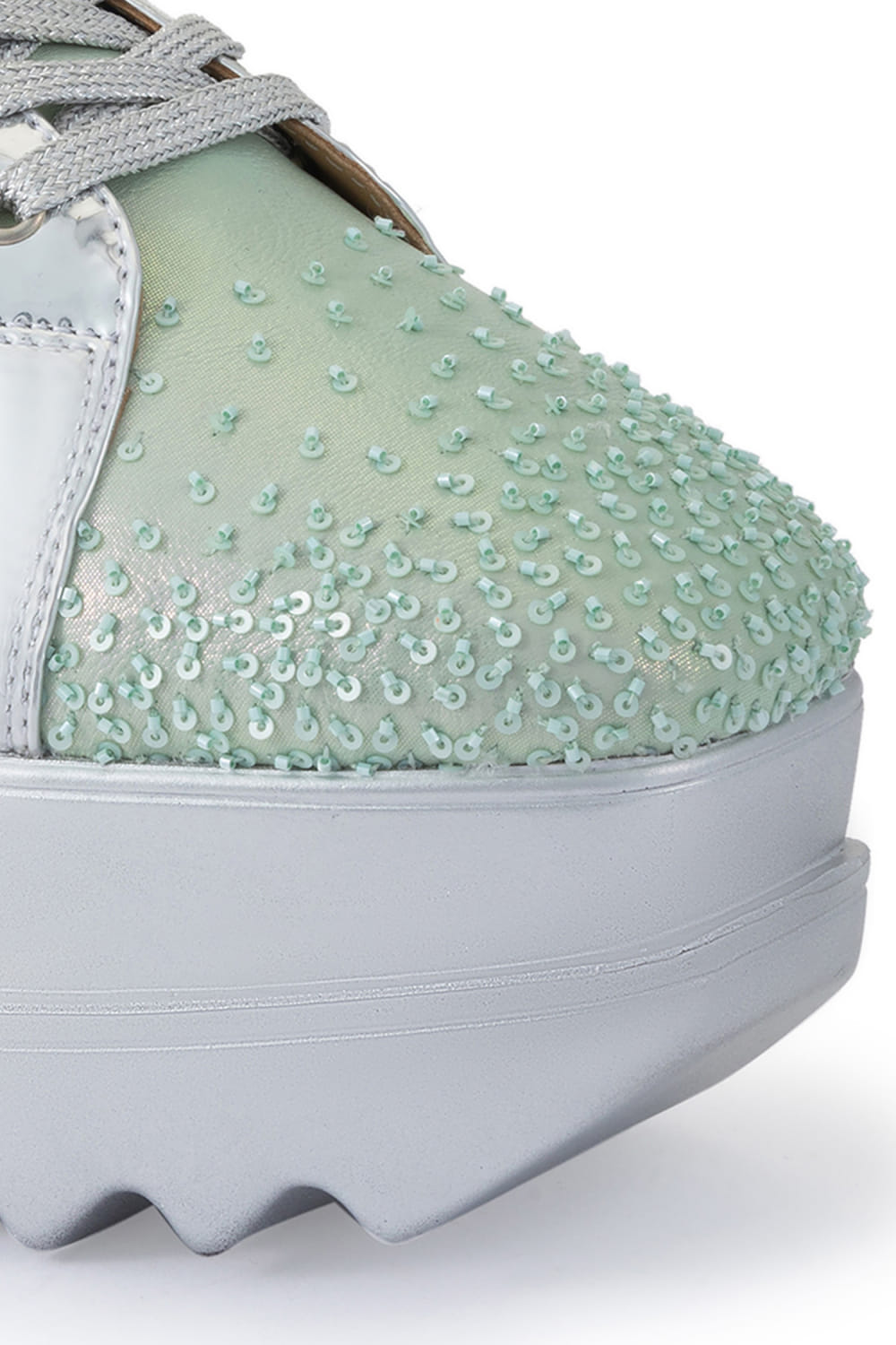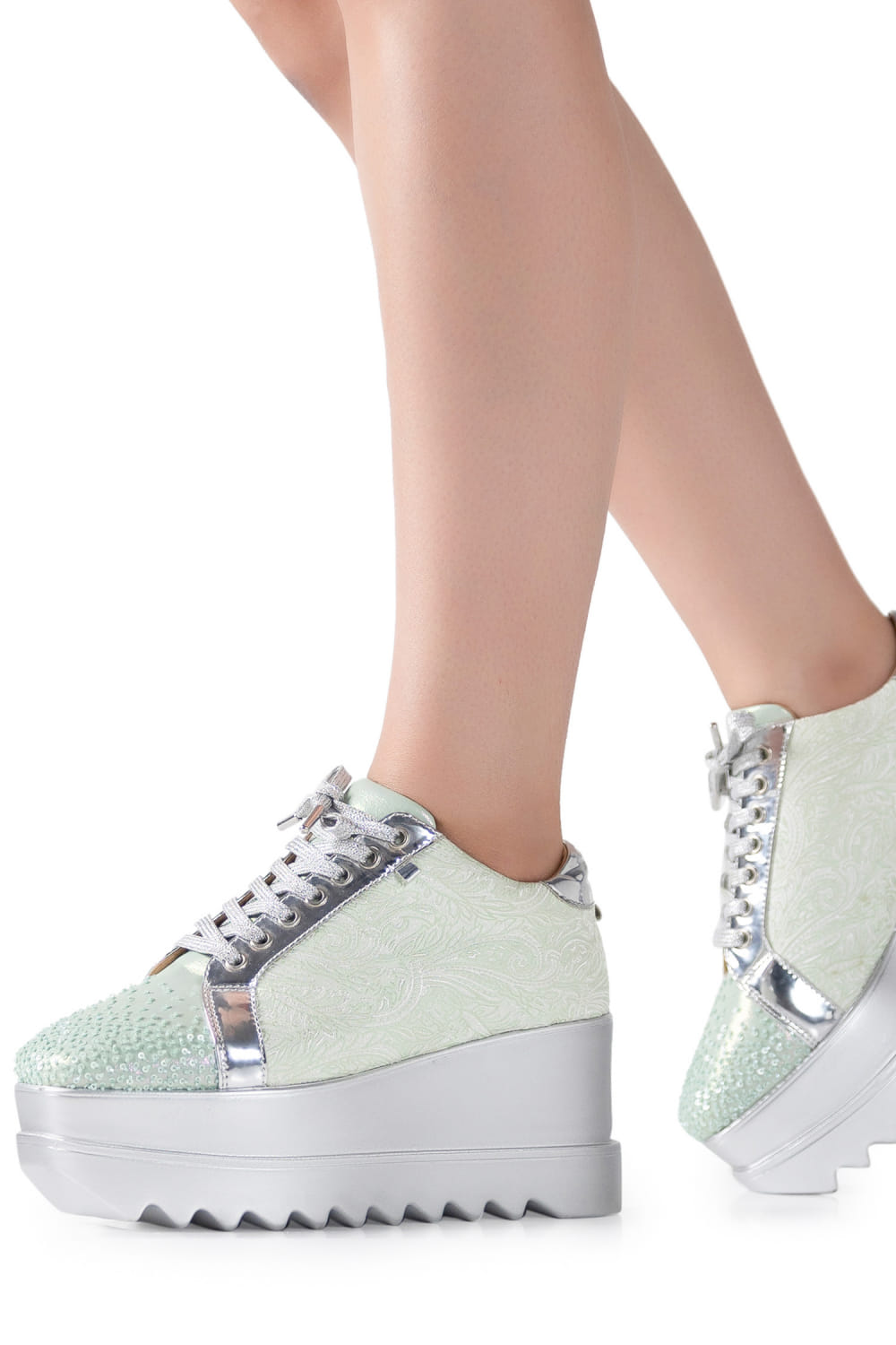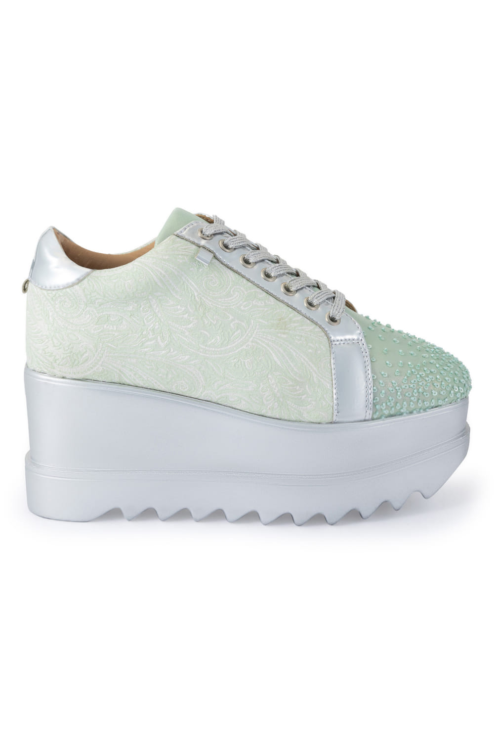 Mint sequinned brocade wedge sneakers