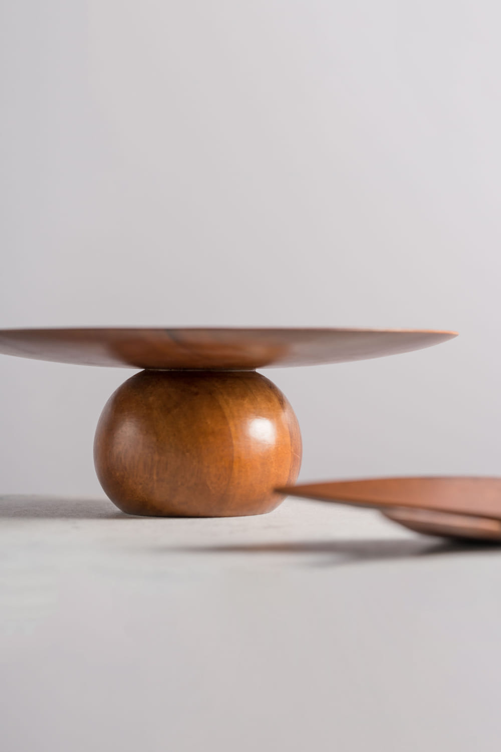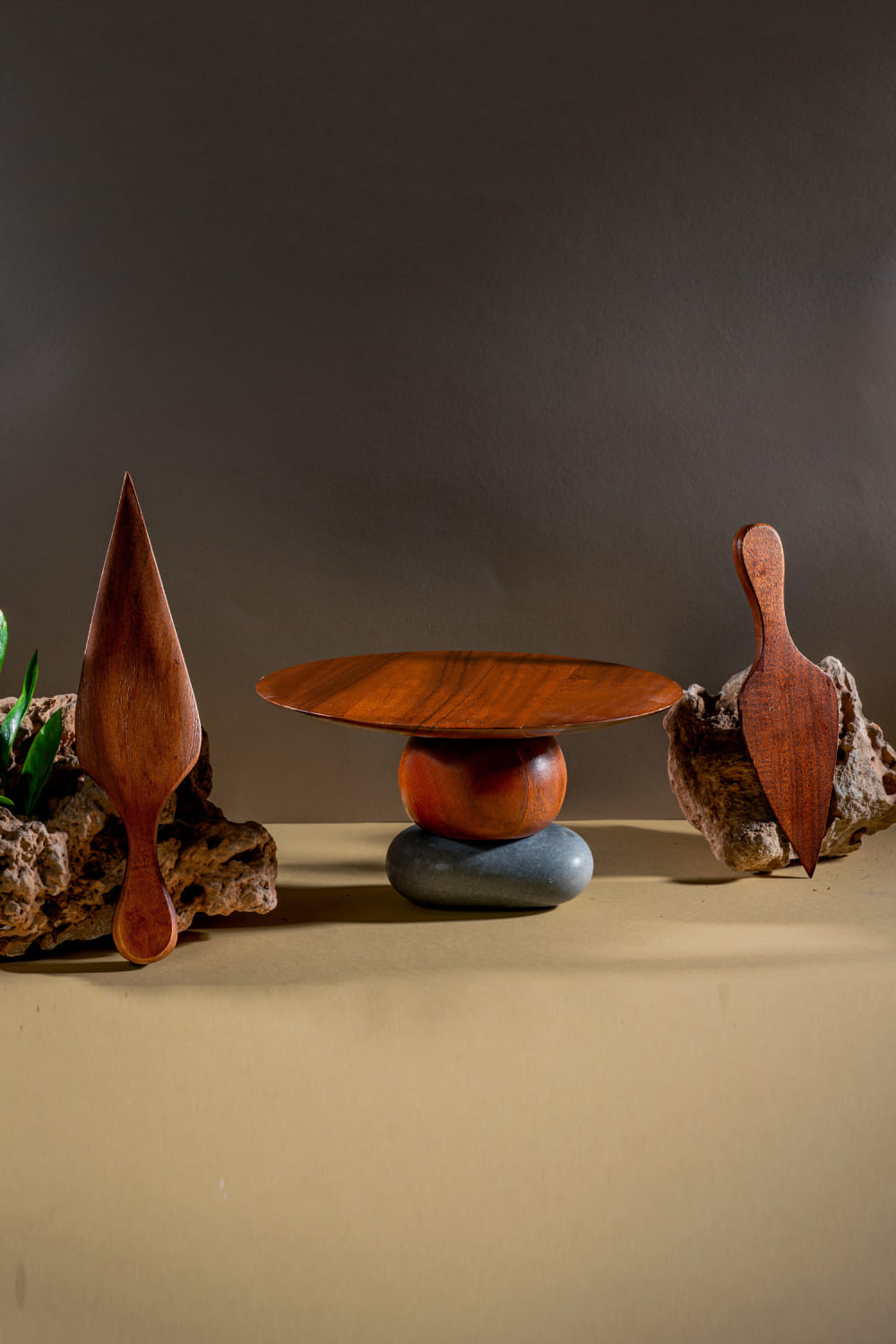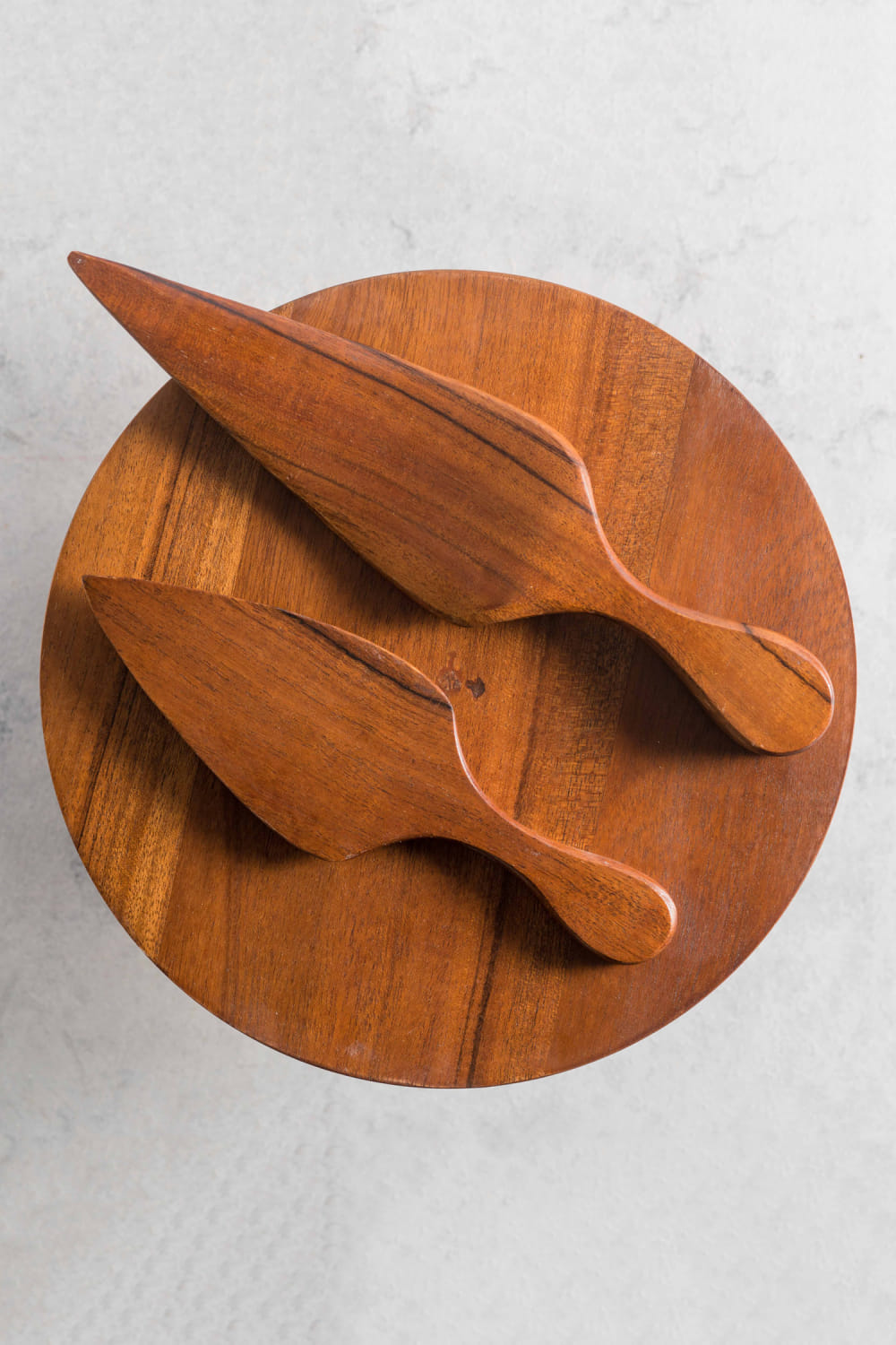 Brown acacia wood cake stand and cutters