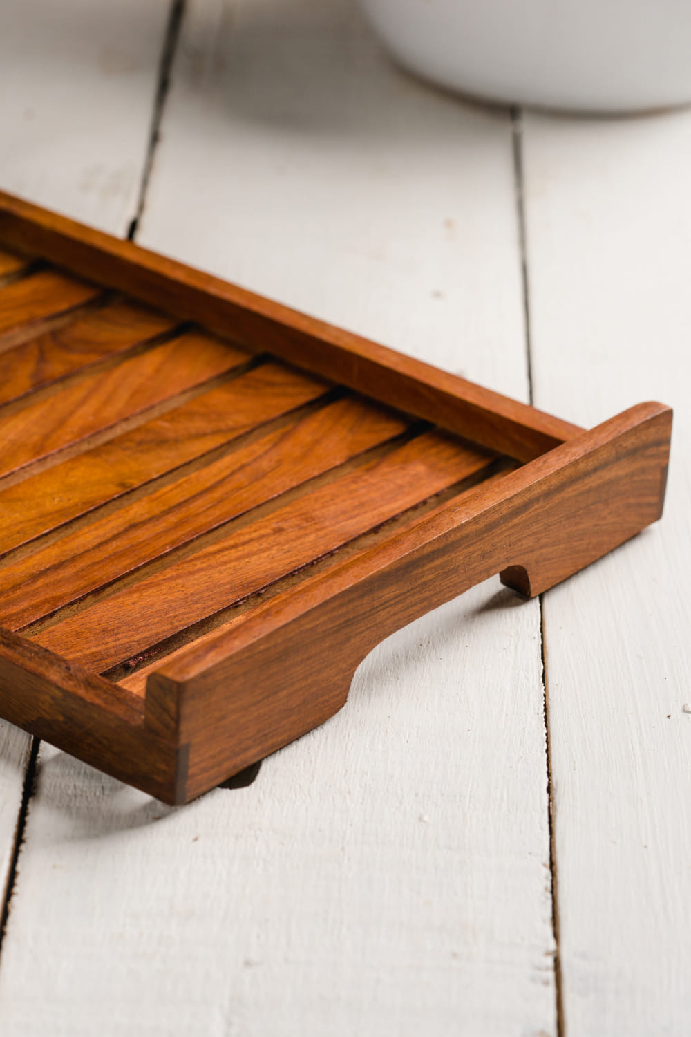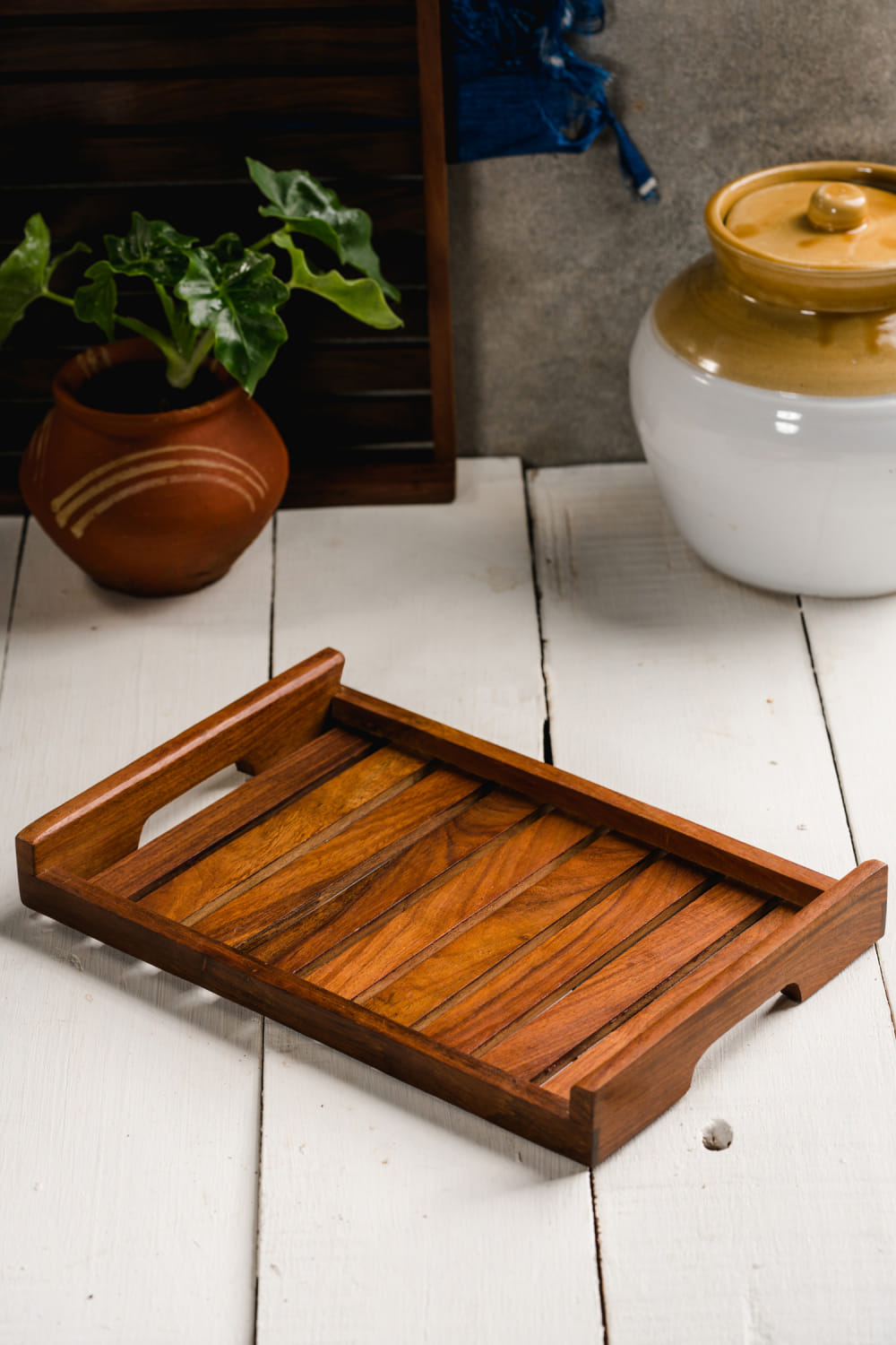 Araana designs this classic yet pretty serving tray in sheesham wood with large stripe patterns. Perfect for serving large bowls with ample space for a dinner party.