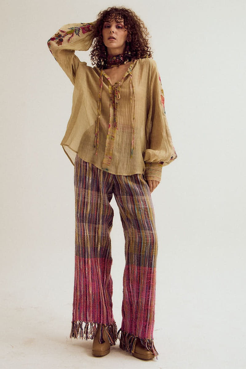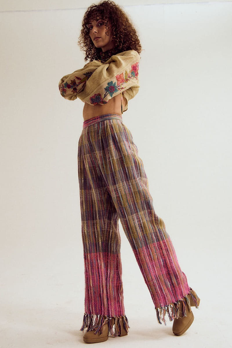 Capisvirleo designs these versatile pants in handloom cotton. It features a front belt and tassel detailing. Style it with a top and boots for casual outings or evening soirees. The shirt shown here is for styling purposes only.