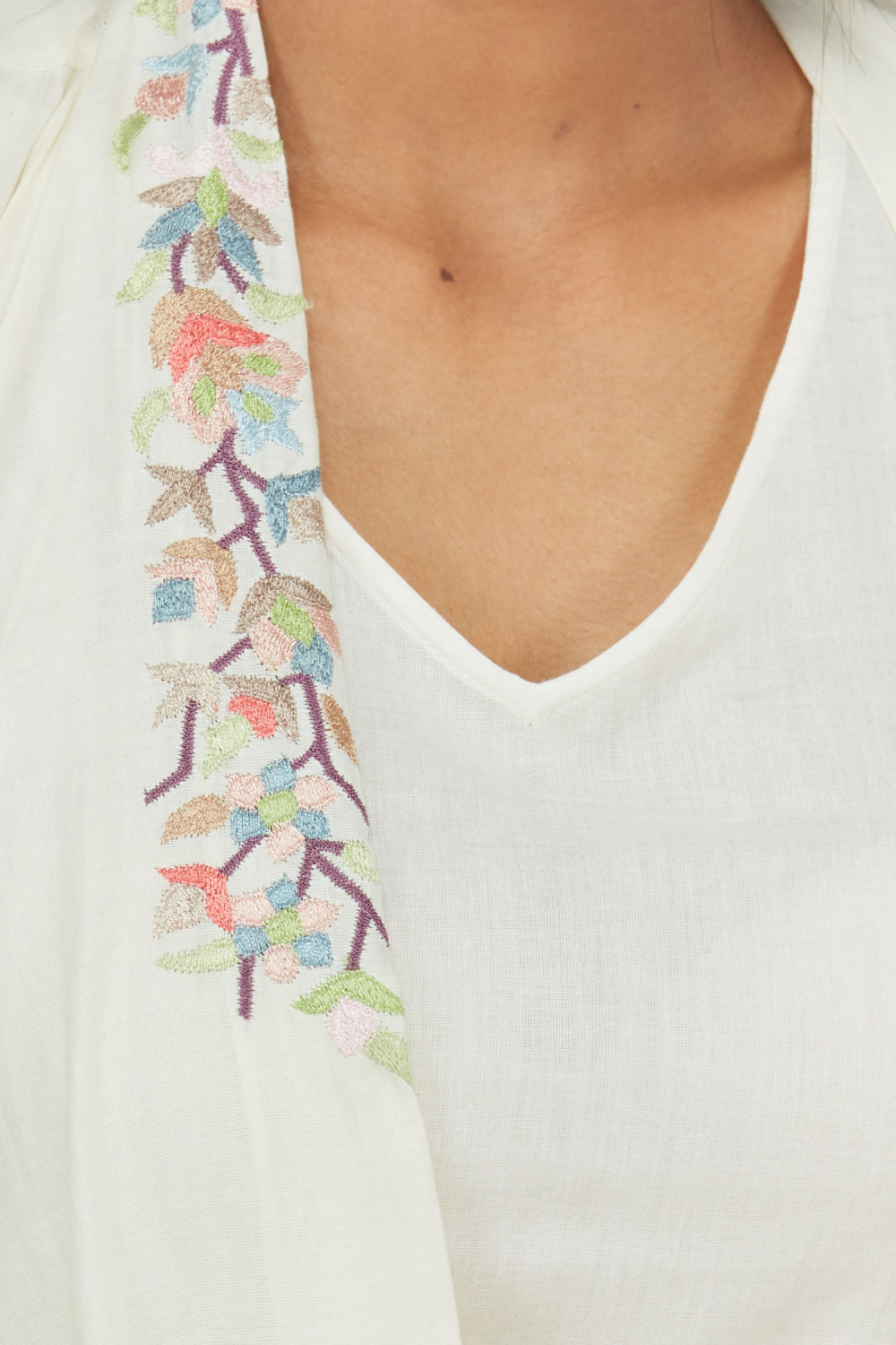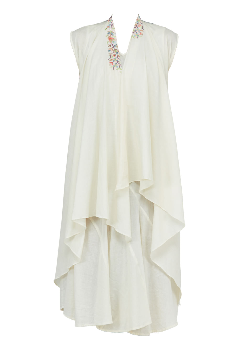 Kanika Sharma defines minimalistic sophistication with this set of tunic and ghera customized with Kashmiri hand embroidery on the collar and tassels. Style the ensemble with a pair of jhumkis and make heads turn.