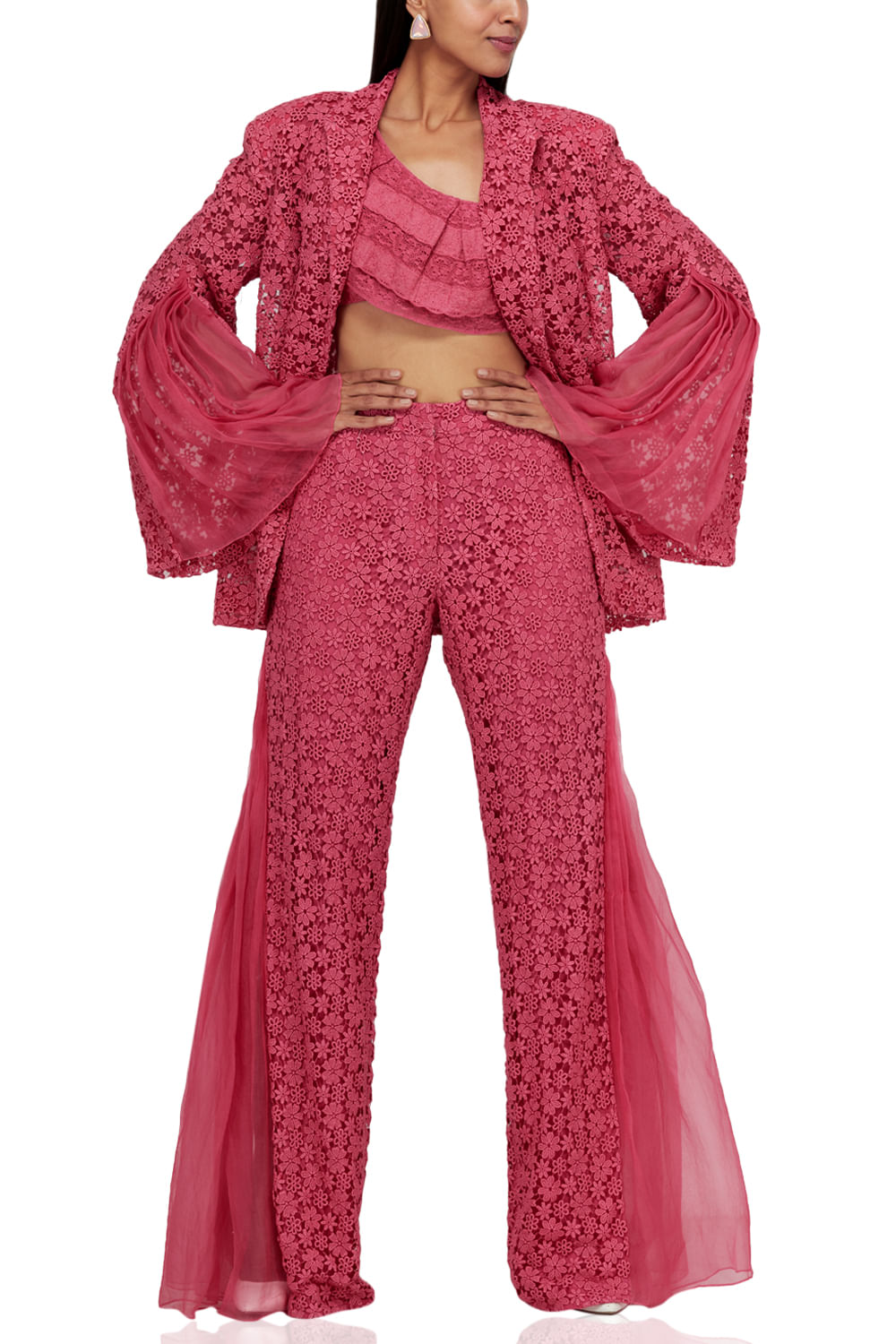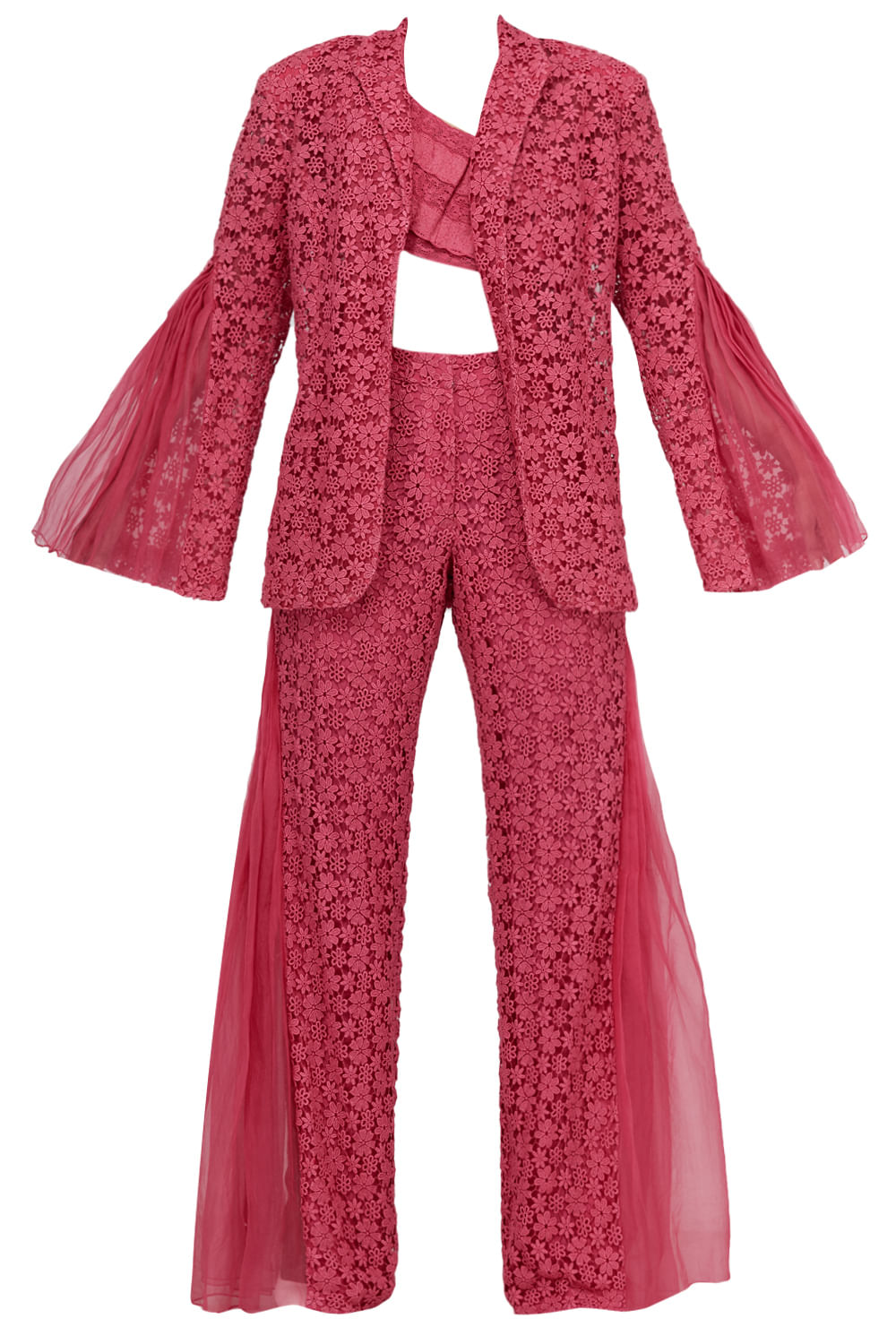 Composition : Jacket-organza & tulle Top-lace Pants-organza & crepe Care : Dry clean only.