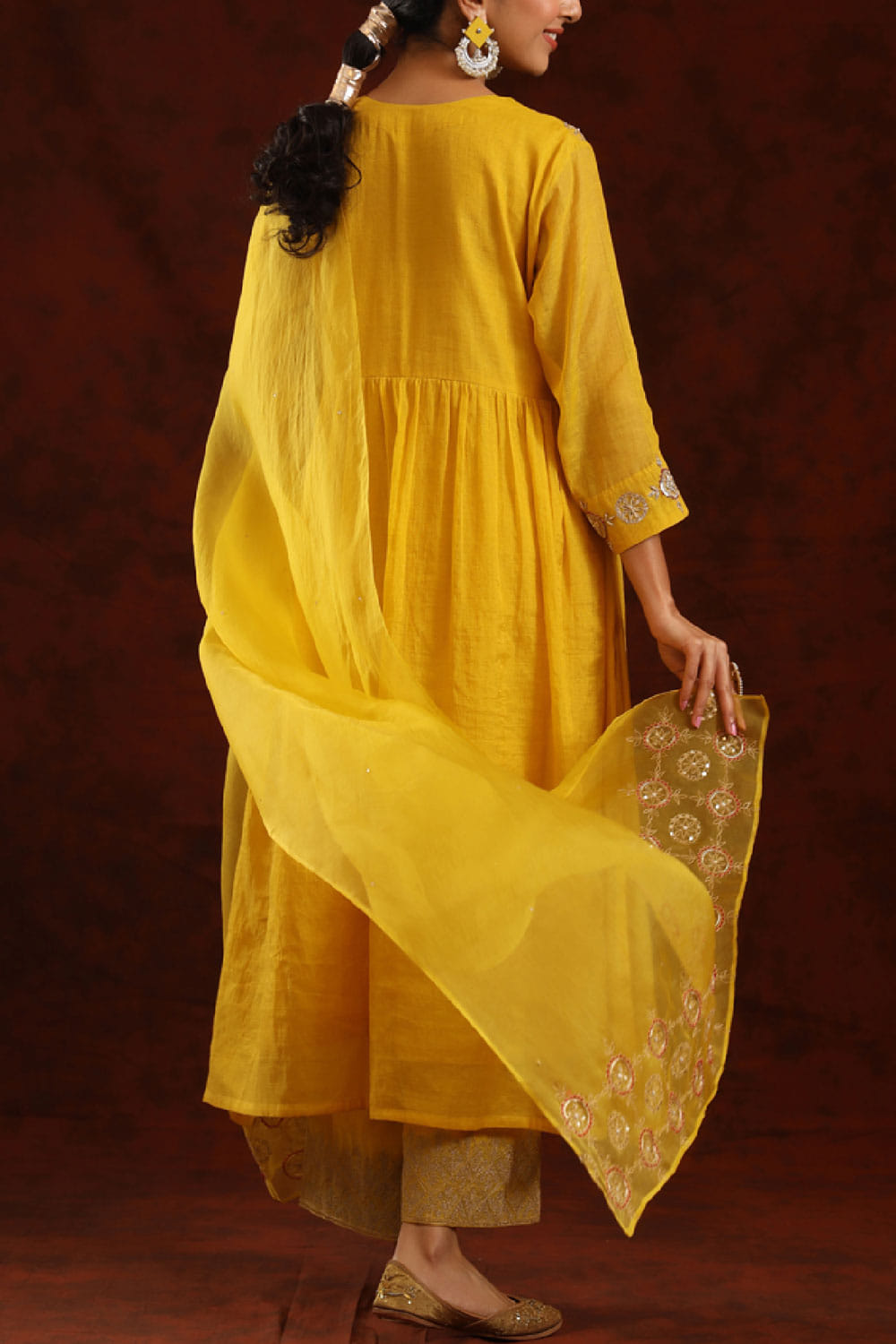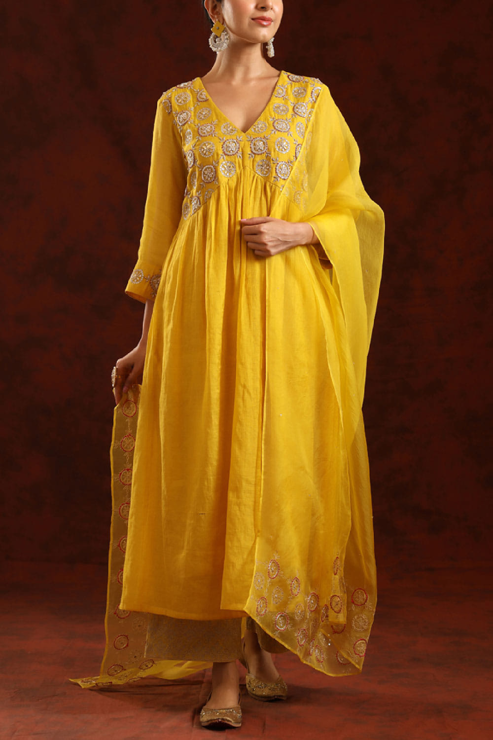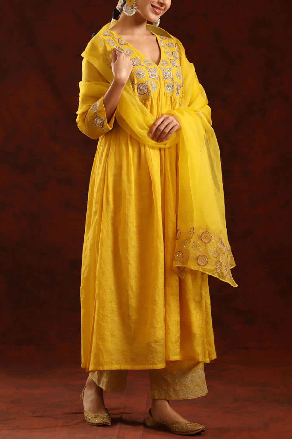 Mustard embroidered kurta set