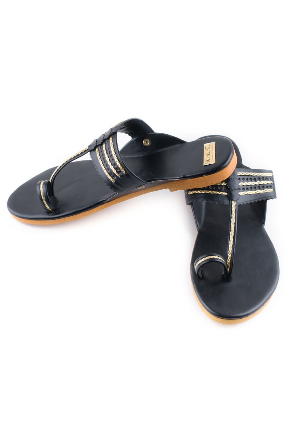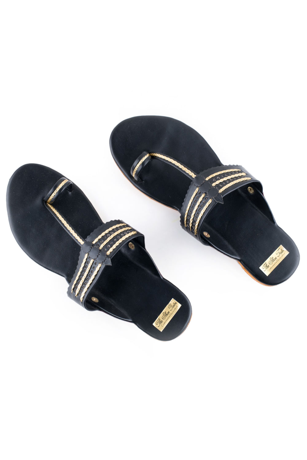 The Shoe Tales designs a stylish pair of peach kolhapuris with impeccable craftsmanship. Team you’re printed kurti with this chic pair.