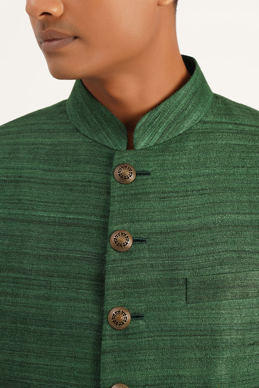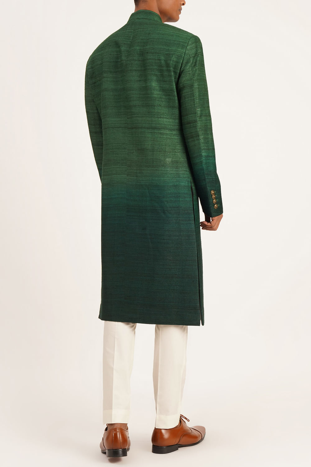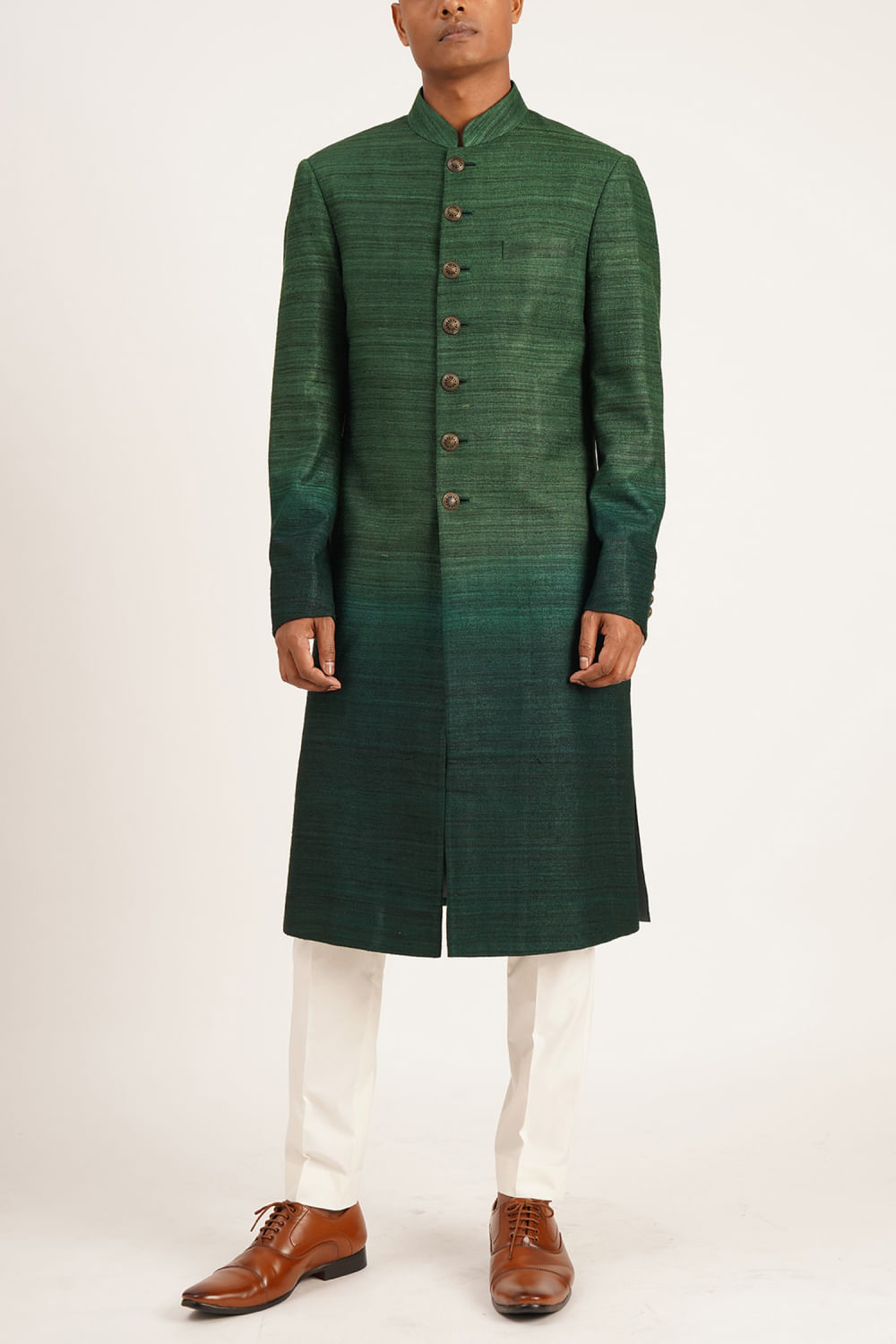Bottle green silk sherwani set