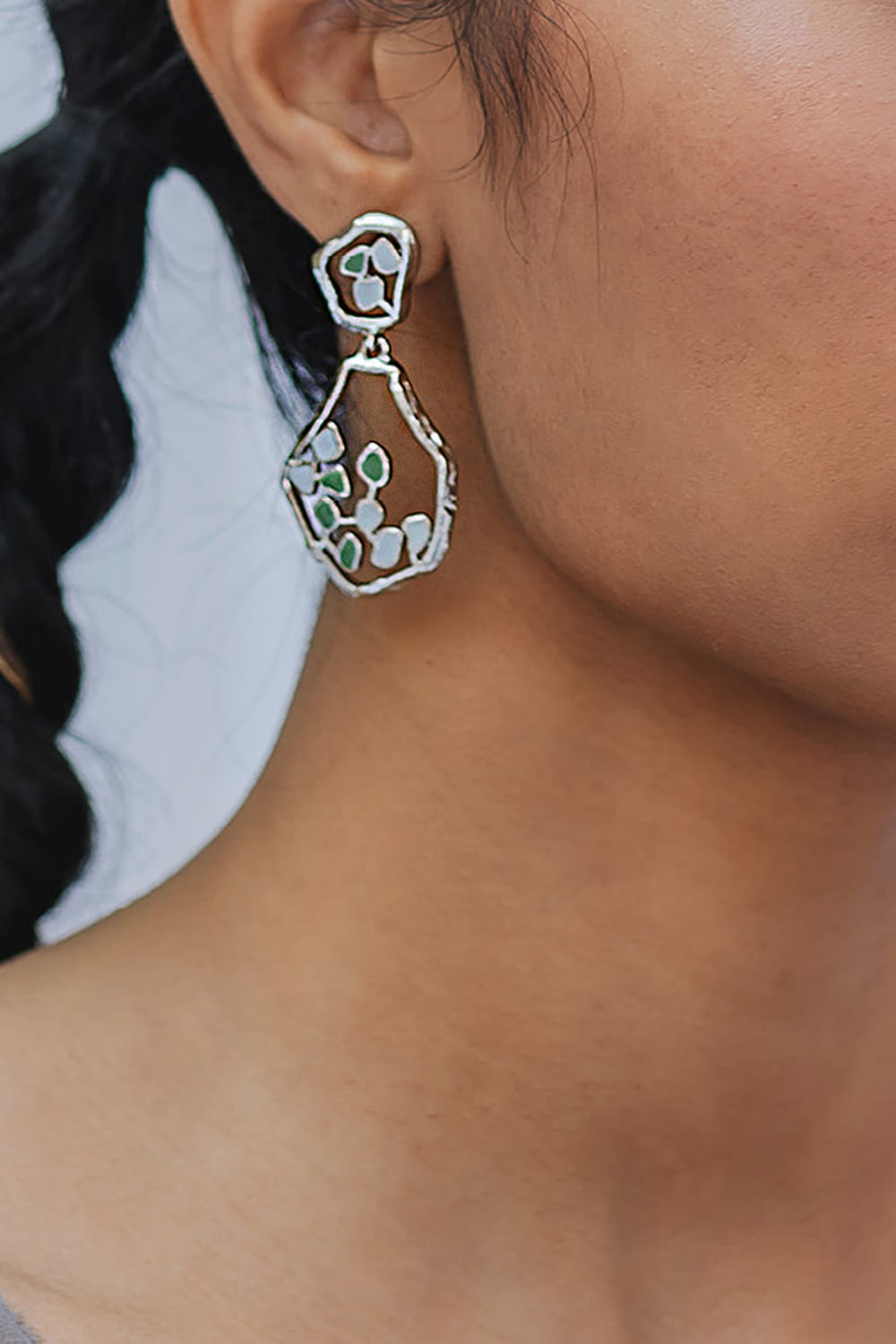 Green artsy drop earrings