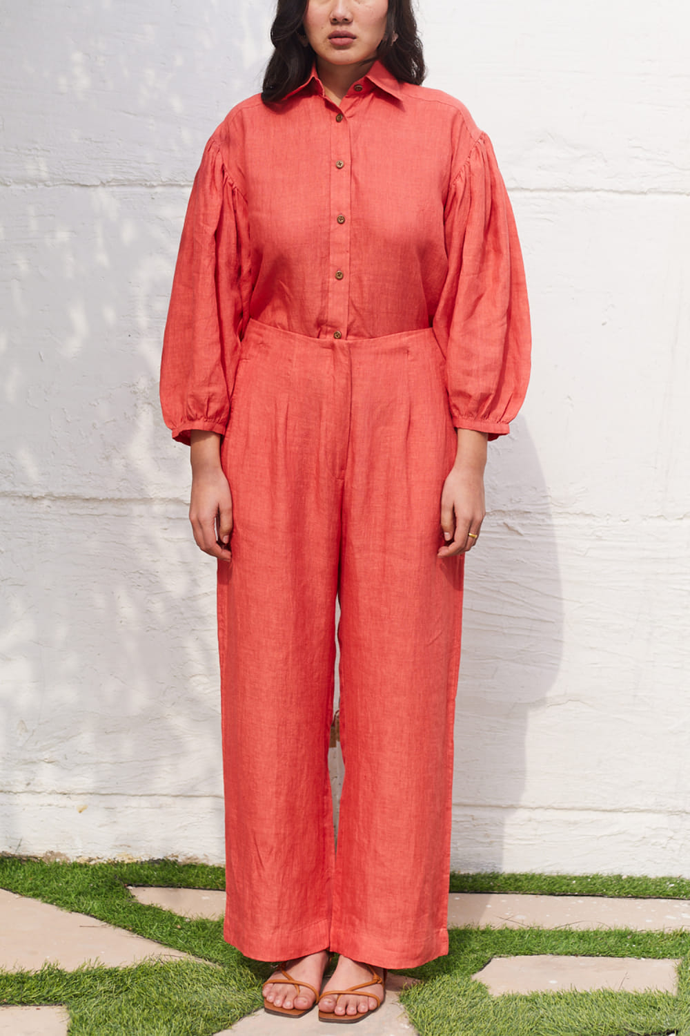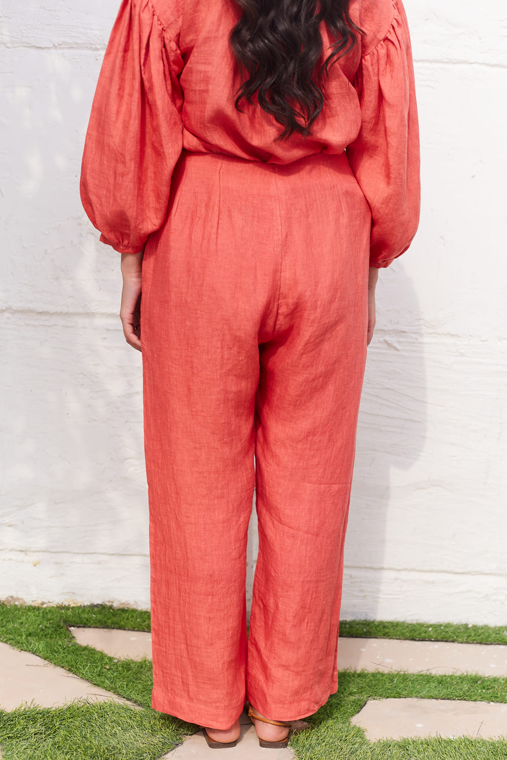 Five Thirty Somewhere designs this comfy pair of pants crafted in linen with zip detailing and welt pockets. Style it with a matching top and wedges for a peppy look. The top here is shown for styling purposes only.
