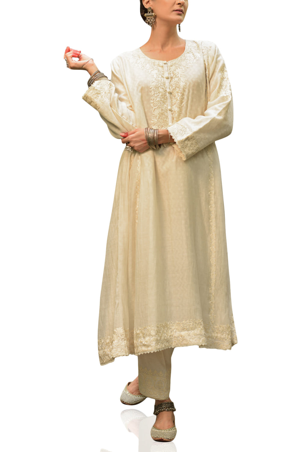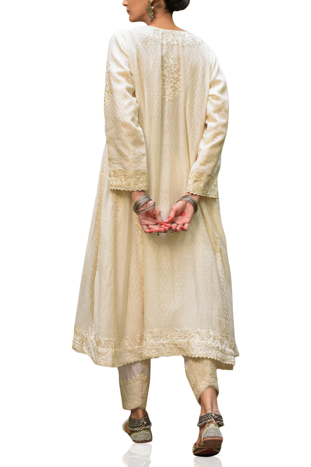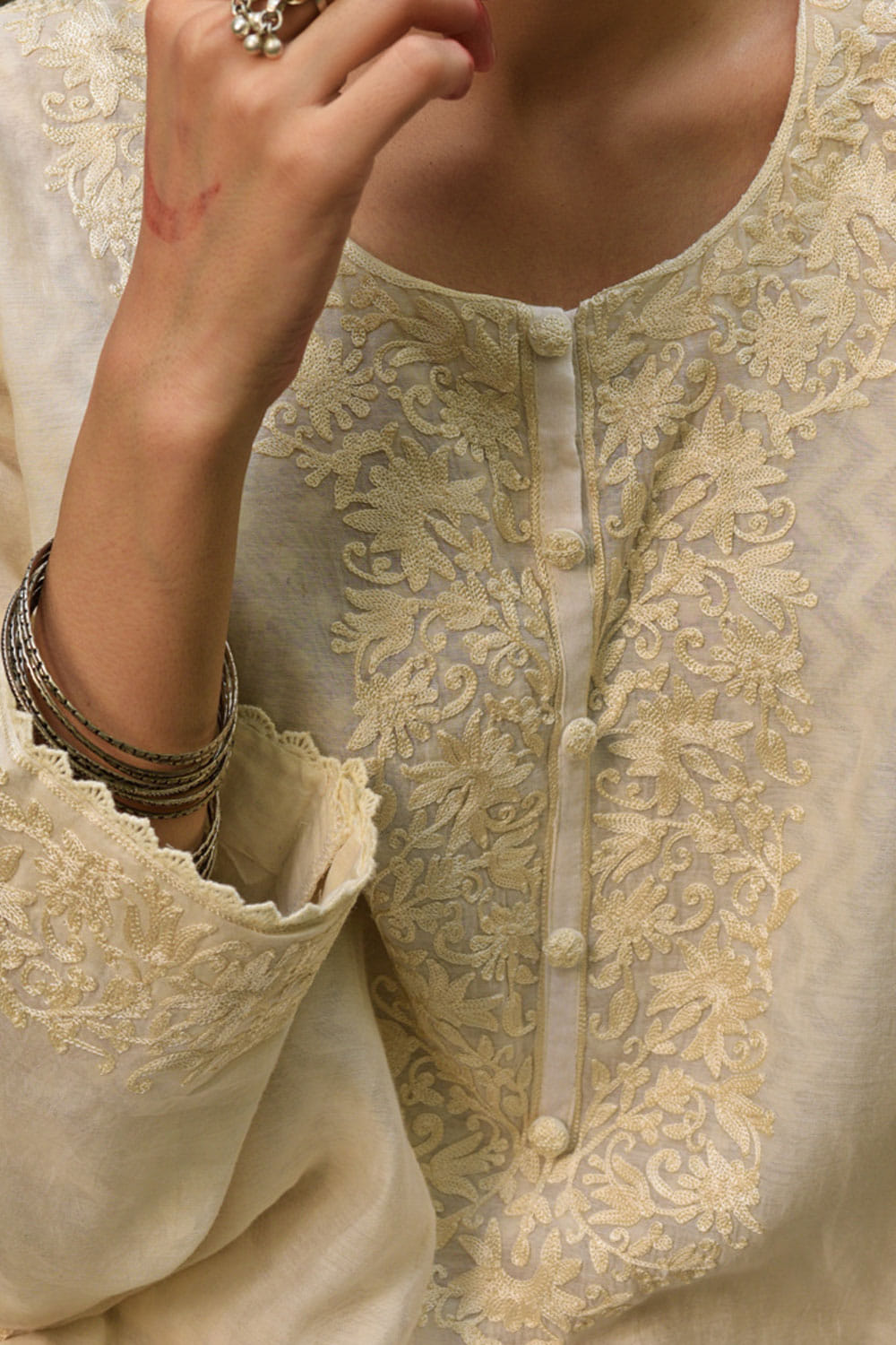 Cream embroidered chanderi kurta set