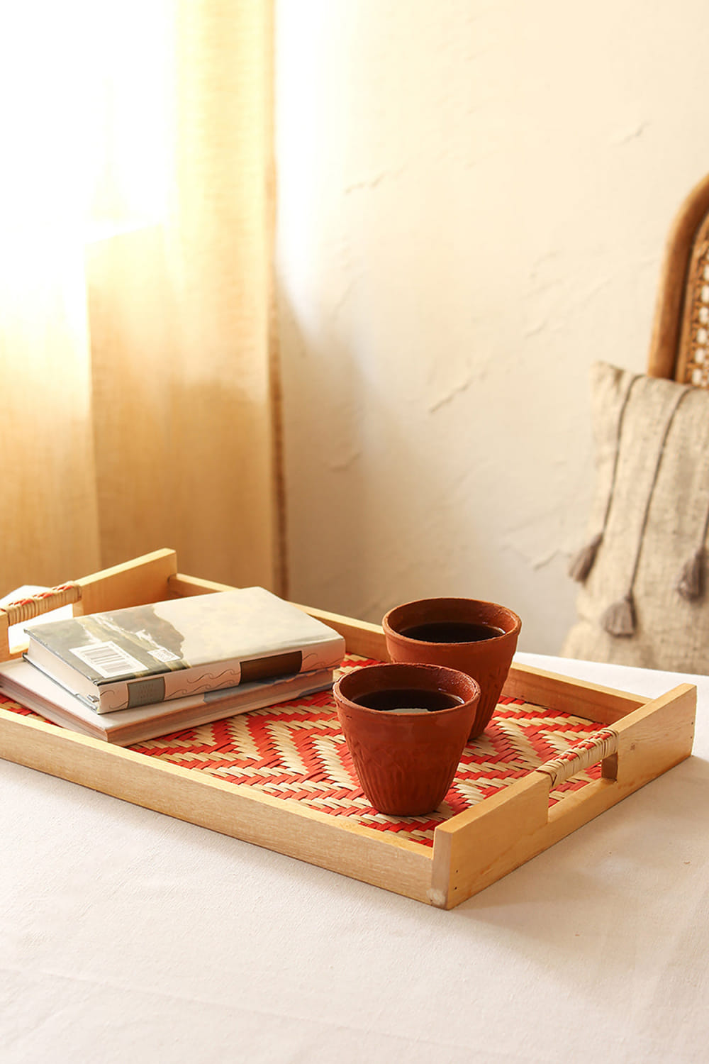 Red teak wood cane tray