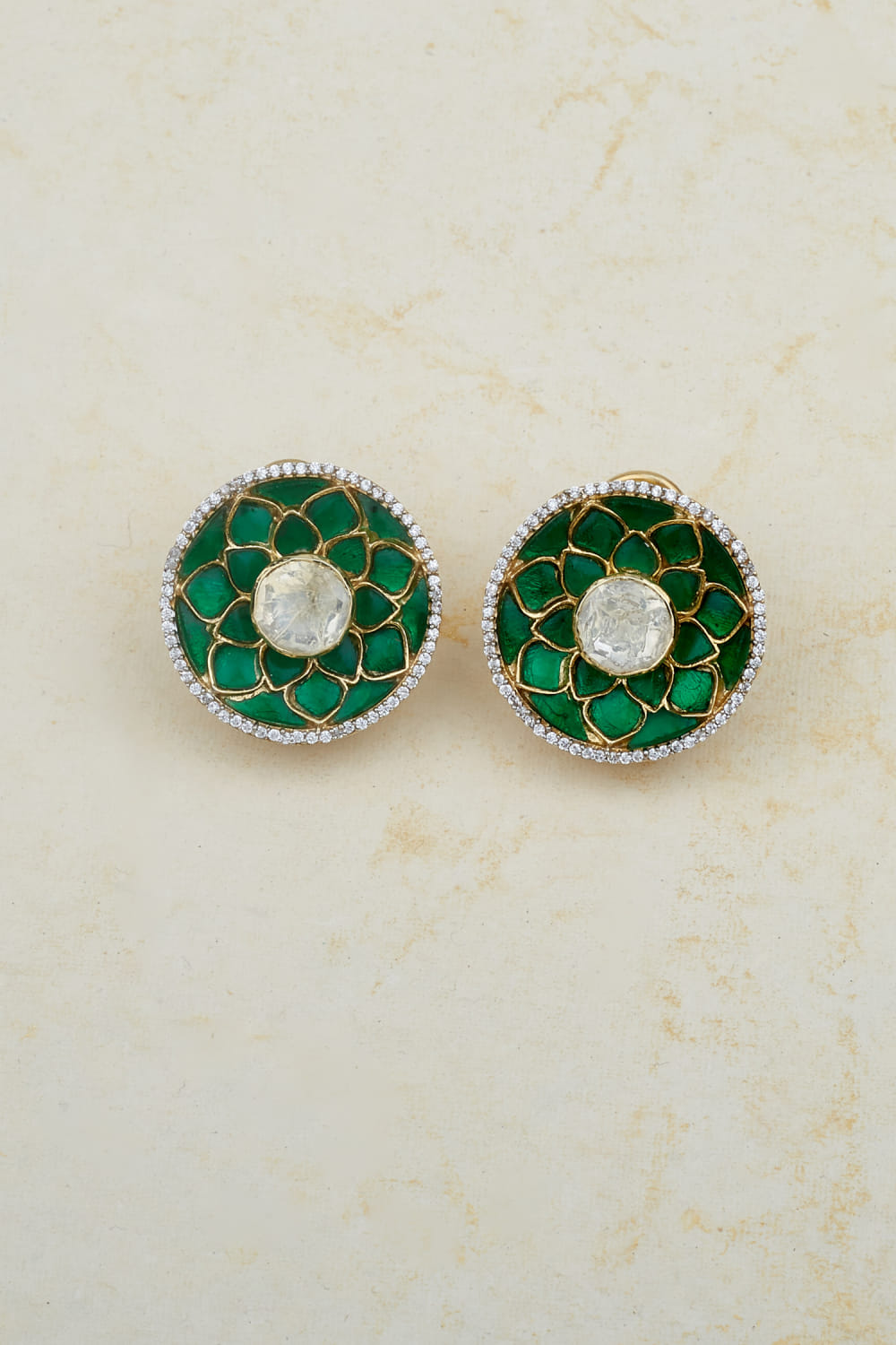 Emerald green floral embellished studs