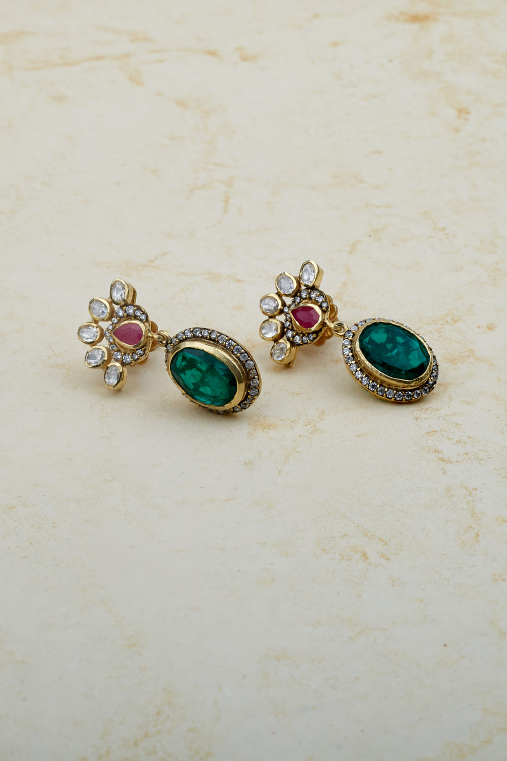 Emerald moissanite polki drop earrings