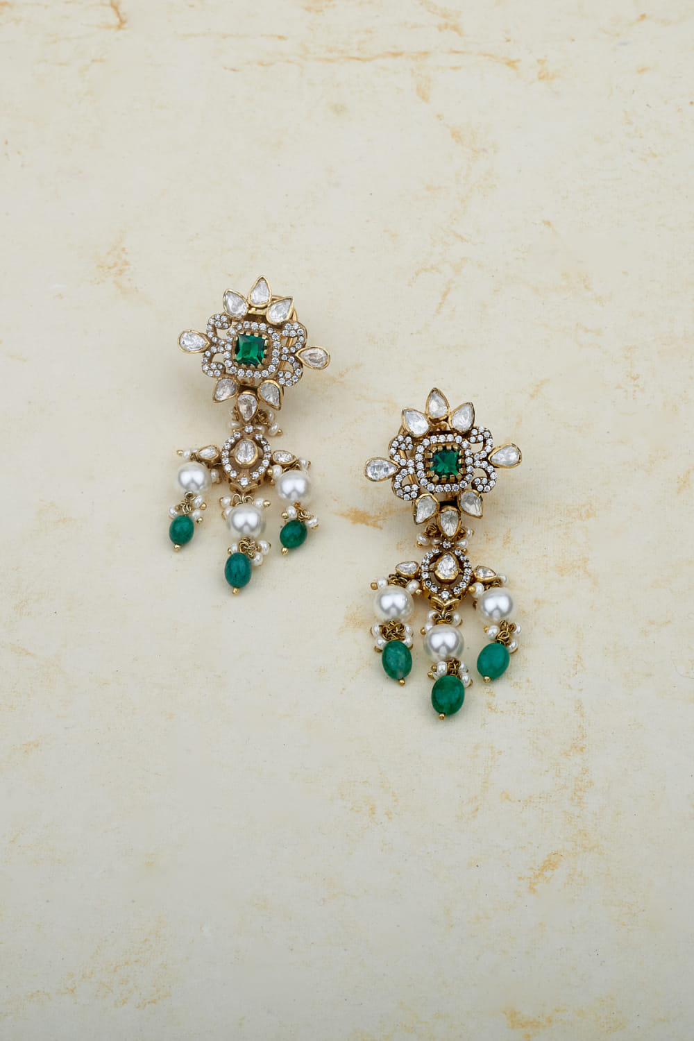 Tropical green moissanite polki earrings