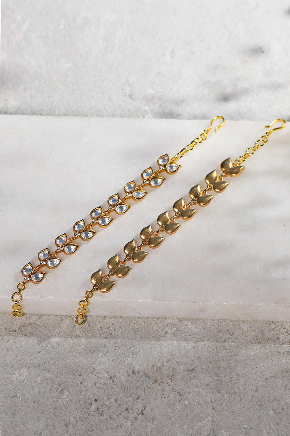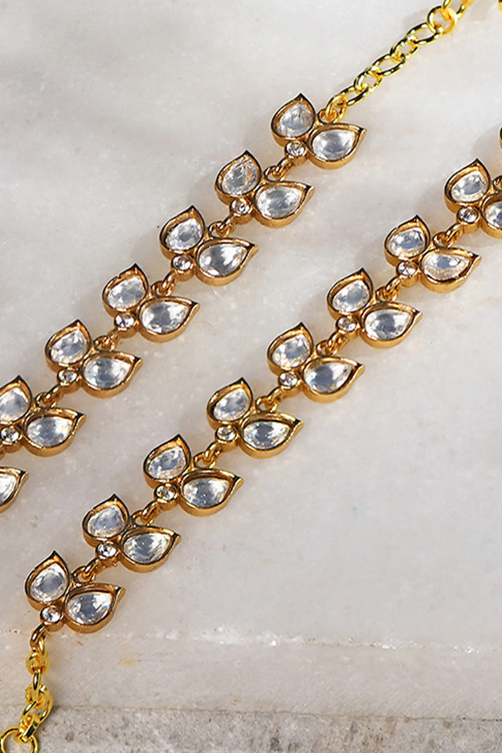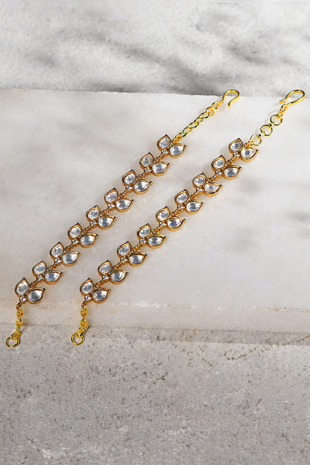 Gold hydro kundan polki ear chains