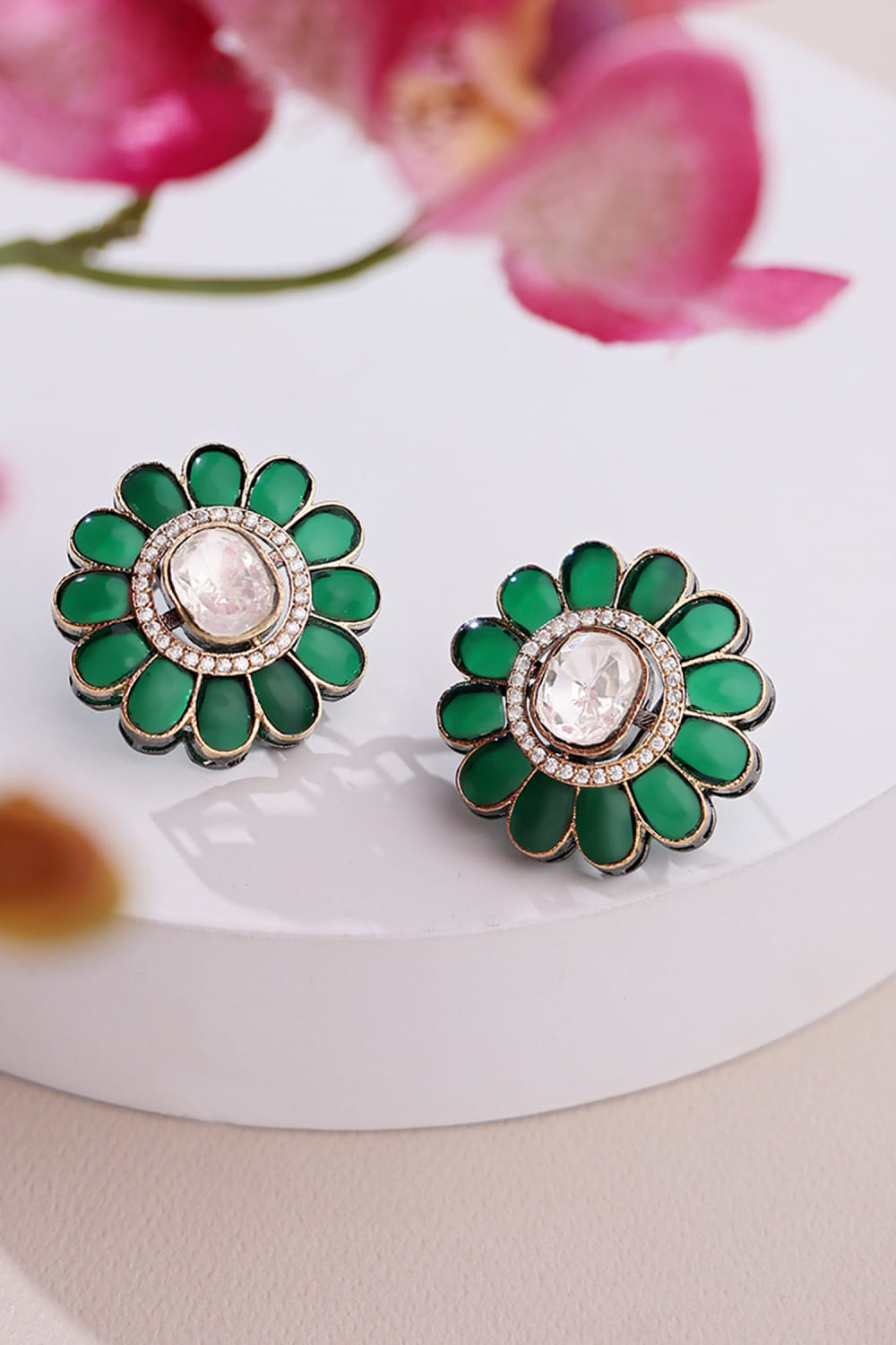 Green polki embellished stud earrings