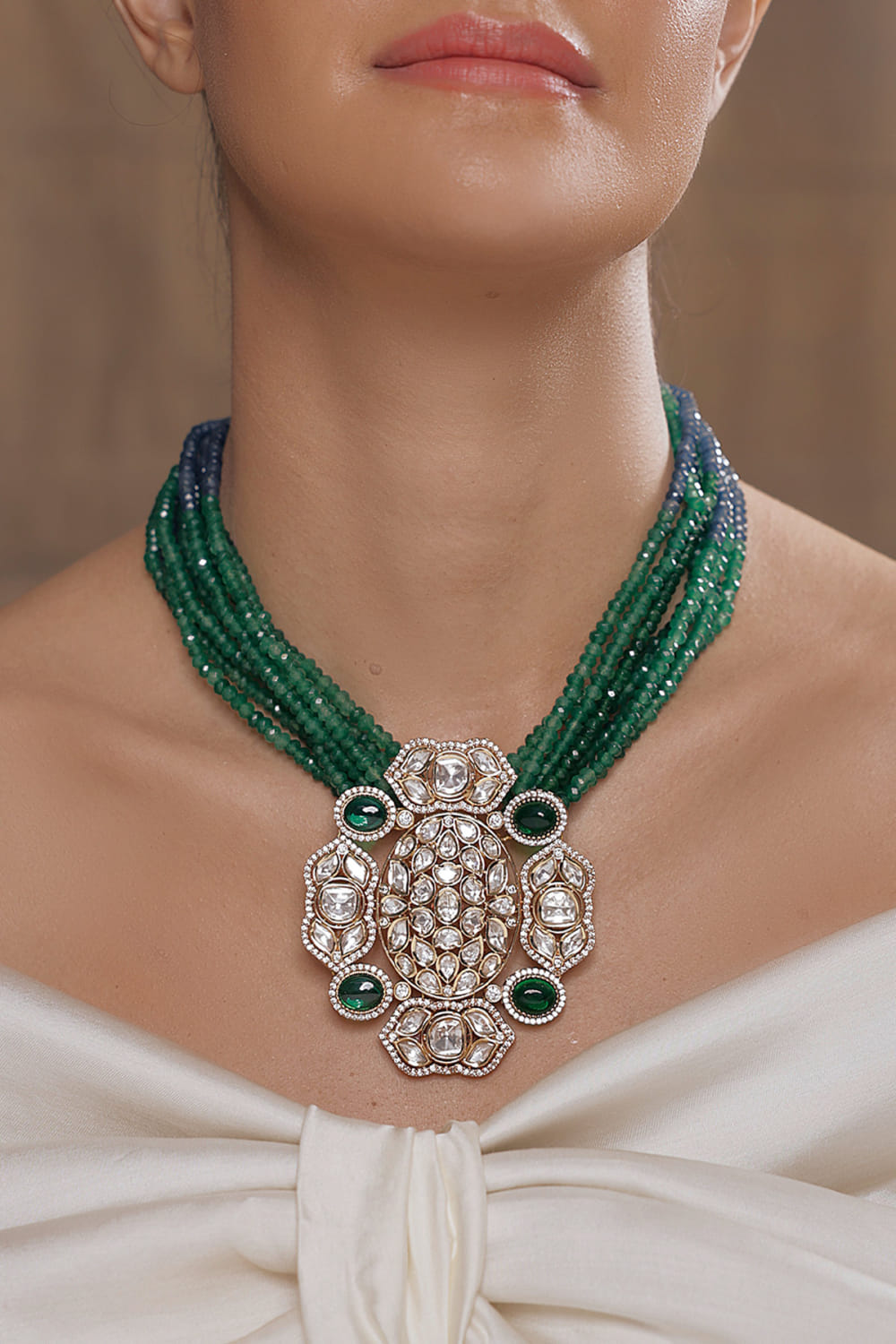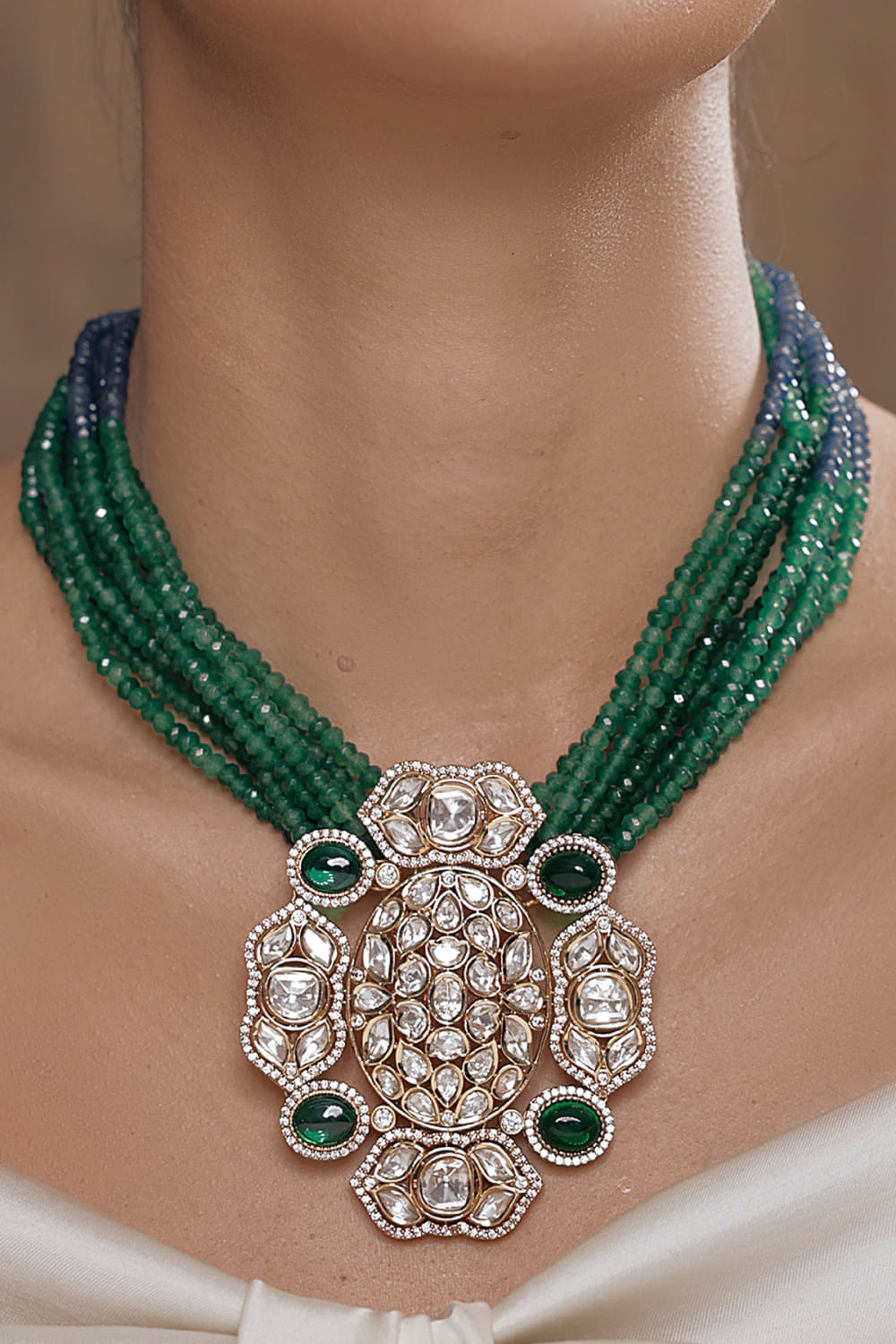 Green polki pendant necklace