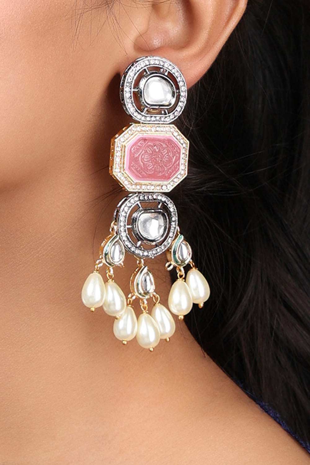 Pink kundan polki earrings