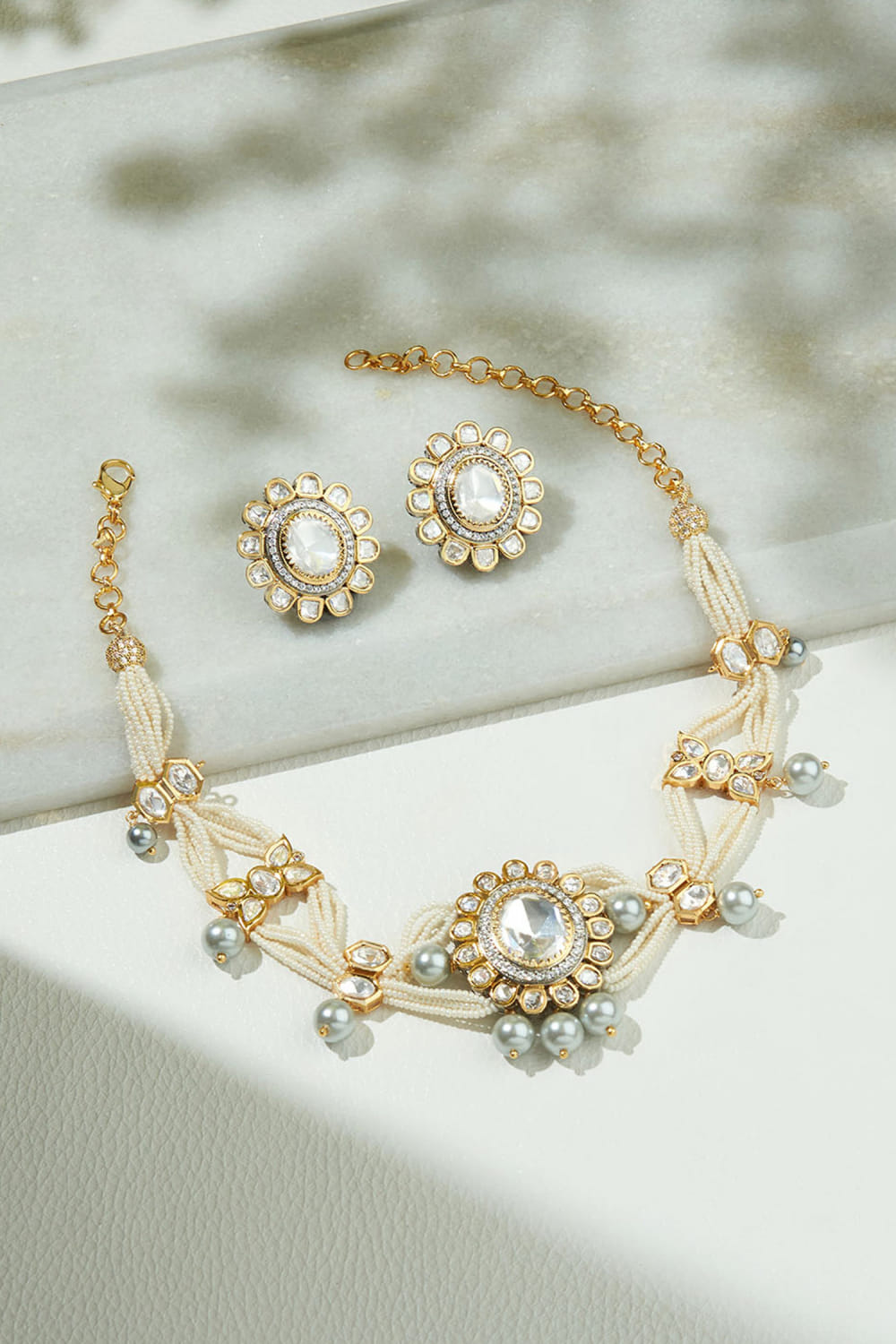 White kundan polki studded choker set