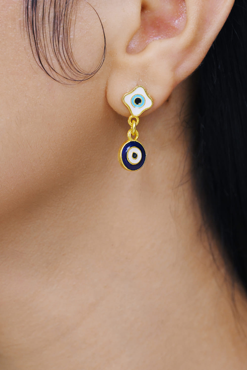 Blue evil eye enamel drop earrings