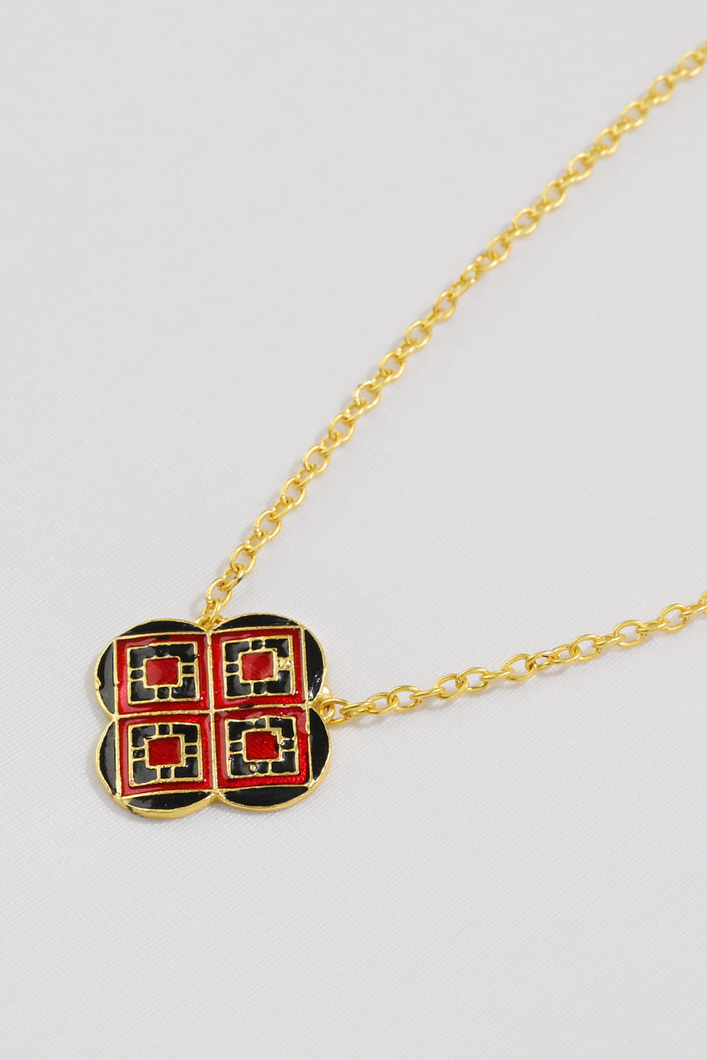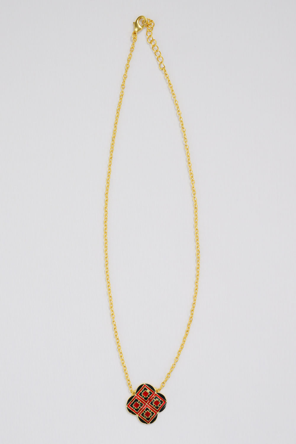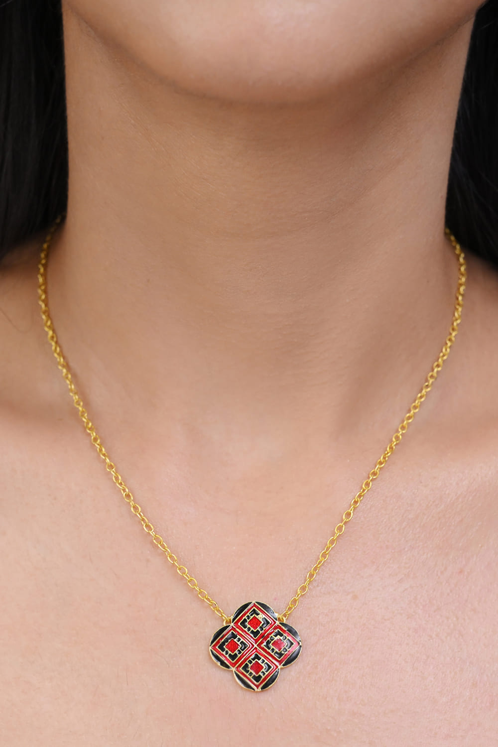 Red and black geometric meenakari necklace