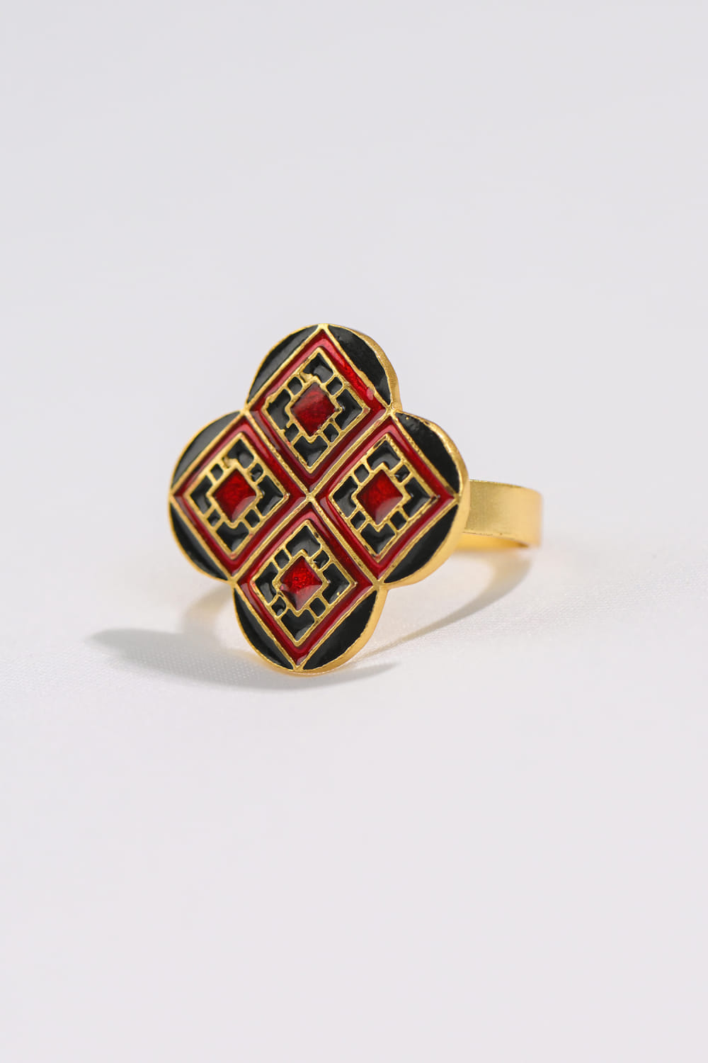 Red and black geometric meenakari ring