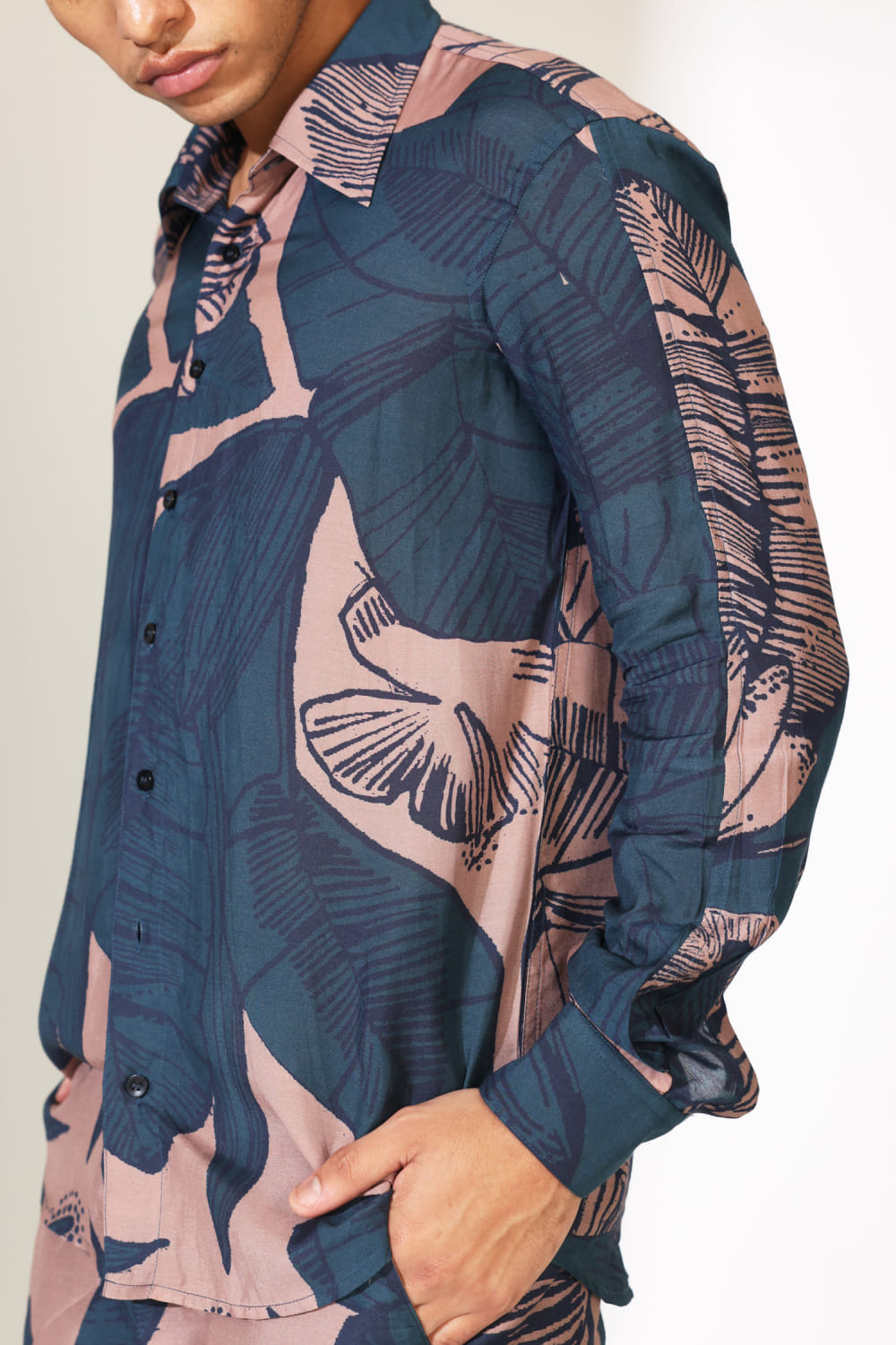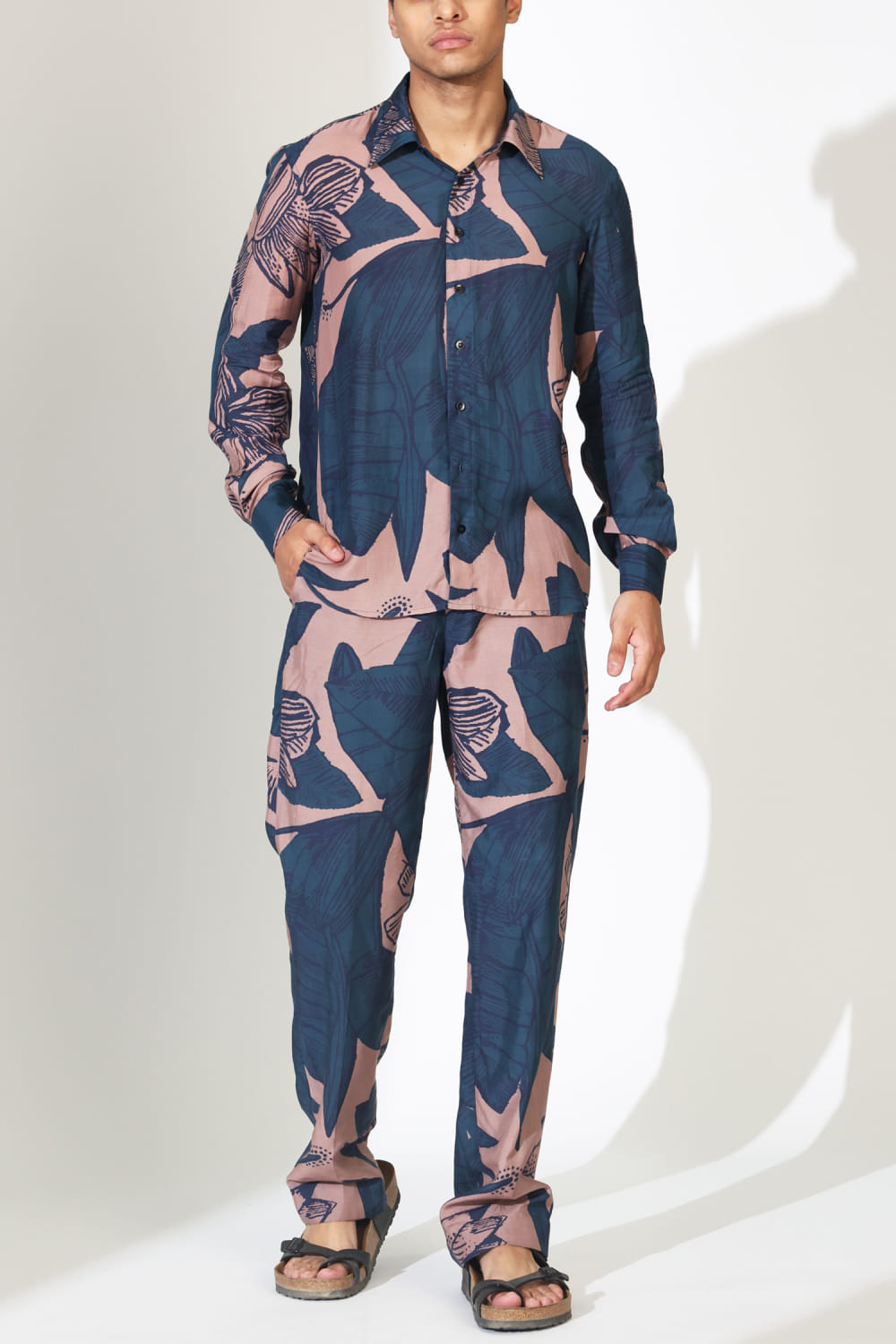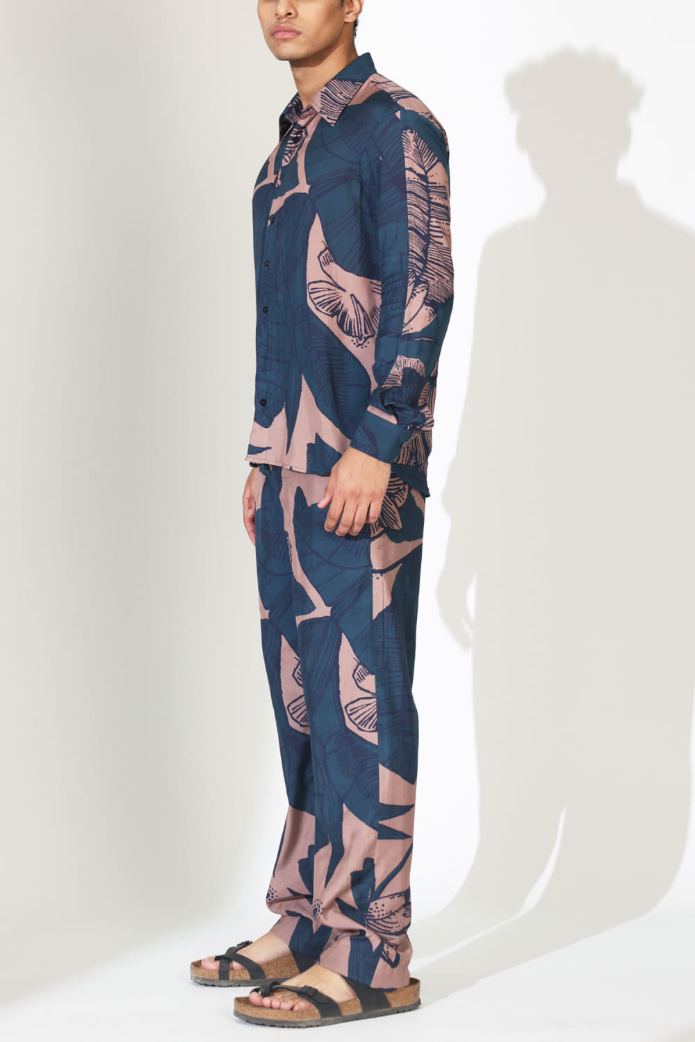 KoAi designs this effortless shirt crafted in muslin cotton silk featuring floral print patterns. Style it with leisure pants and mules for a resort vibe. The pants here are shown for styling purposes only.