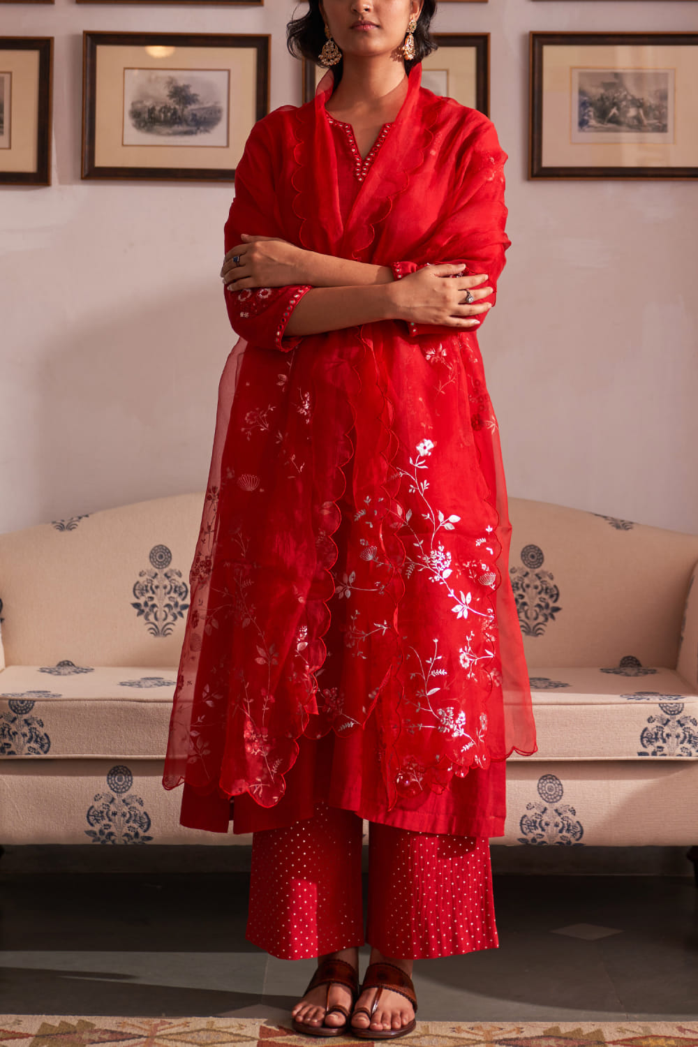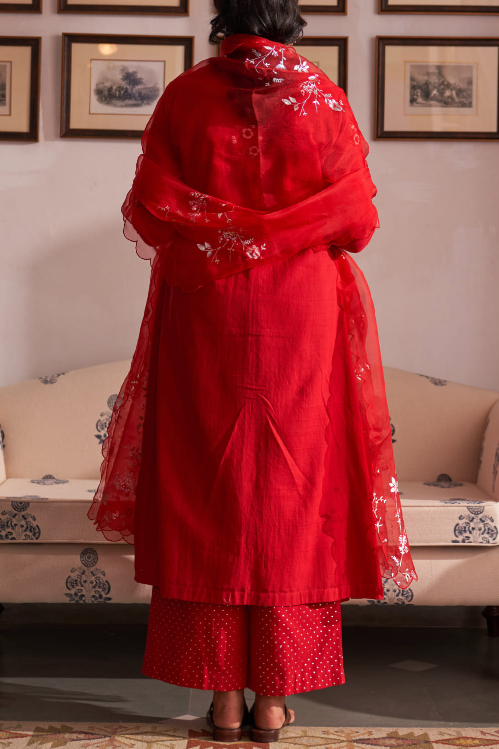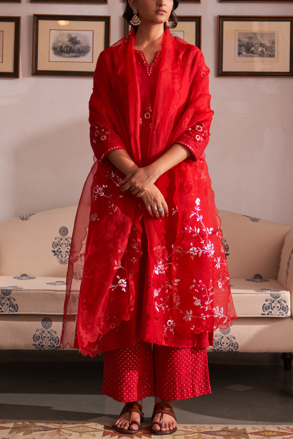 Red floral embroidery kurta set