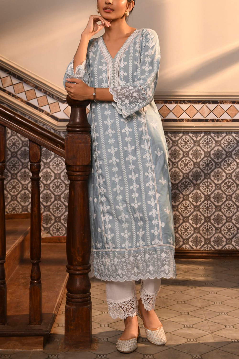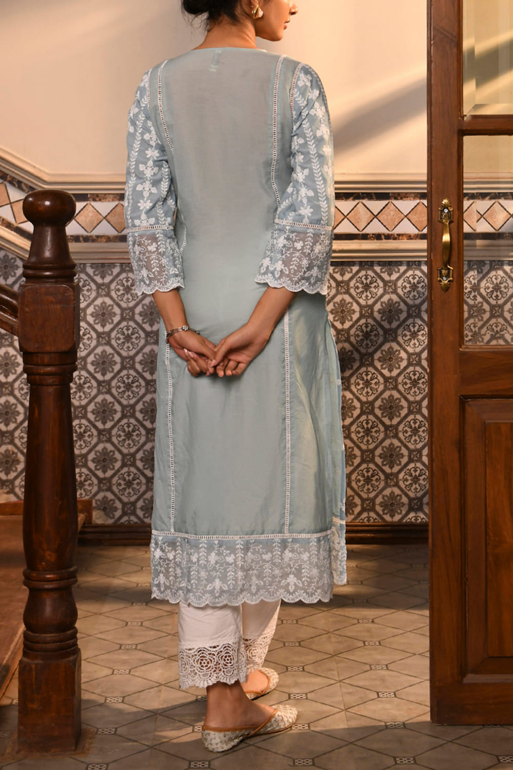 Blue floral embroidered kurta set