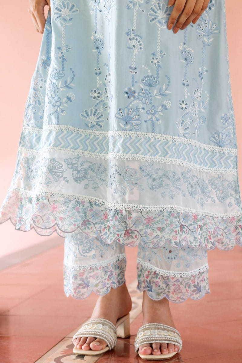 Blue floral embroidery cotton kurta set