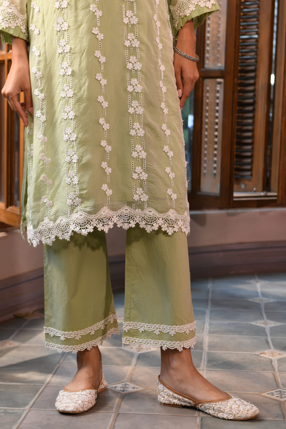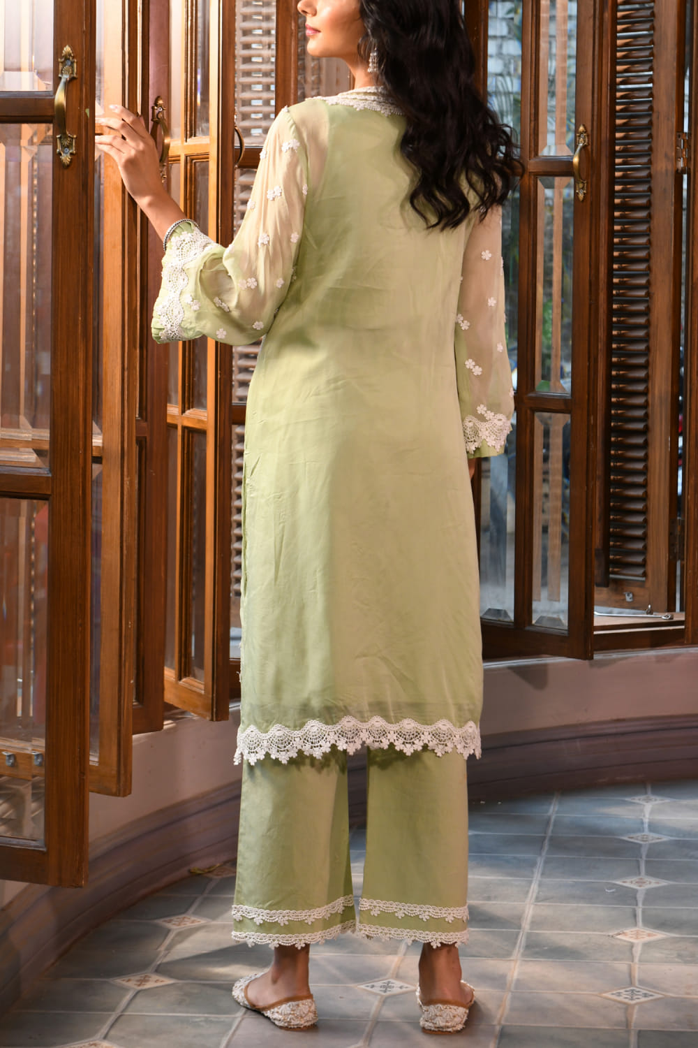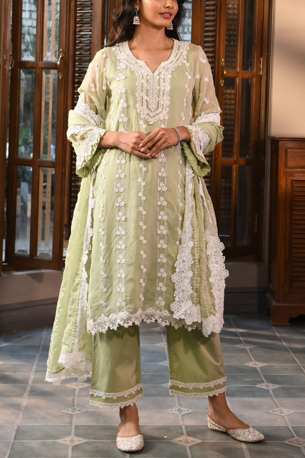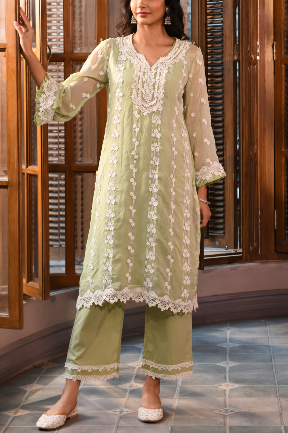 Green 3D floral embroidery kurta set