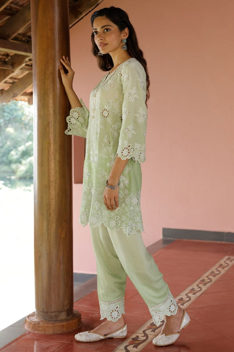 Green floral embroidery kurta set