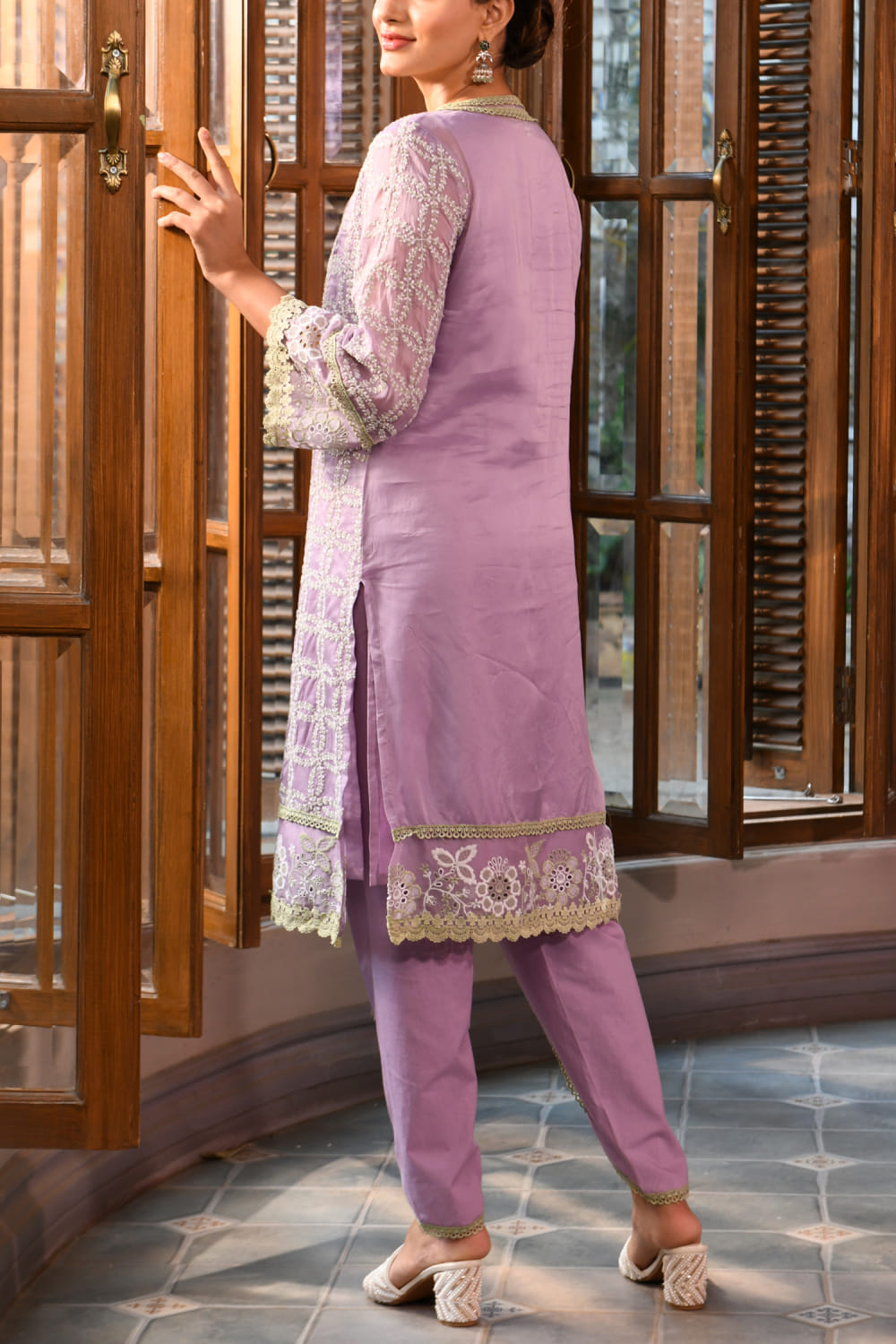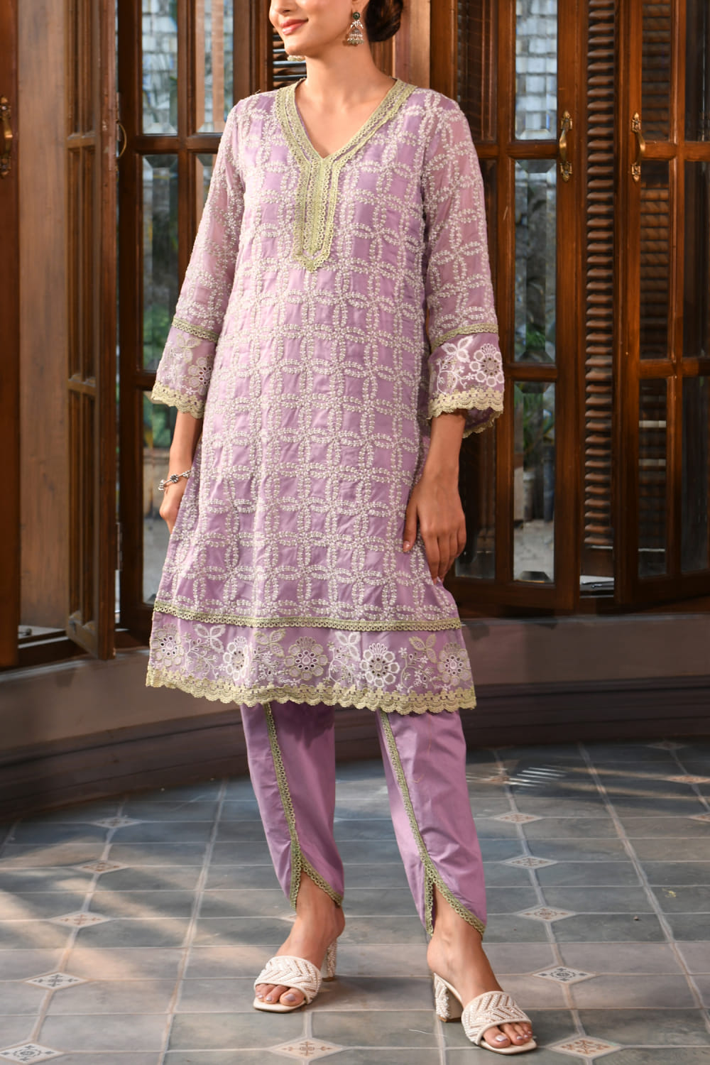 Lavender embroidered kurta set