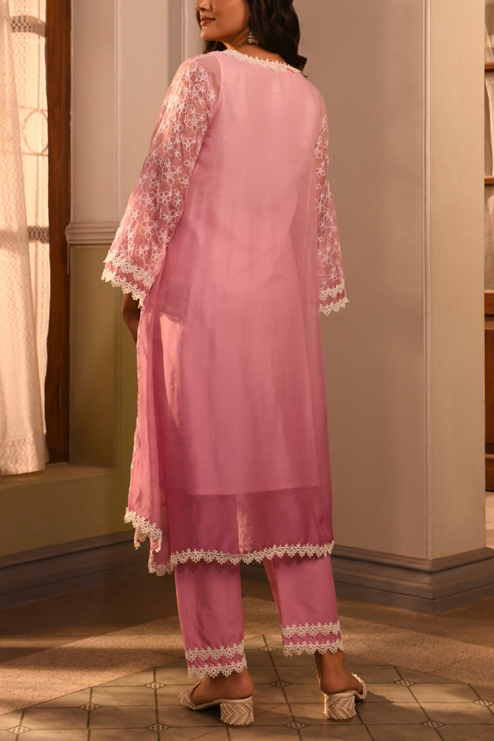Lavender floral embroidered kurta set