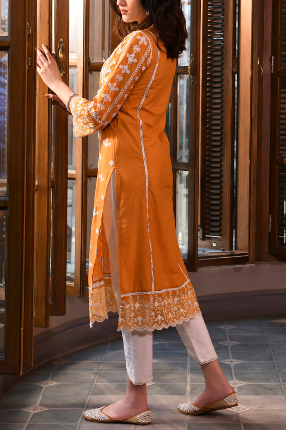 Orange floral embroidery kurta set