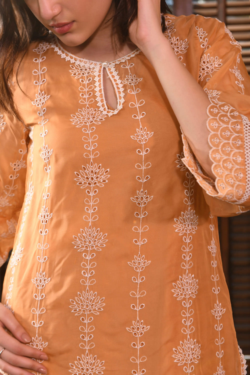 Orange floral embroidery kurta set
