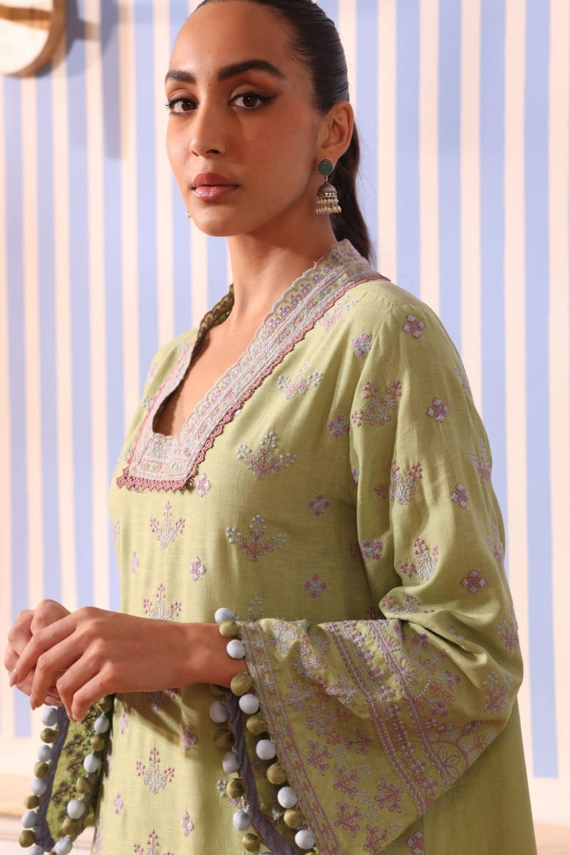 Pastel lime floral embroidery kurta set