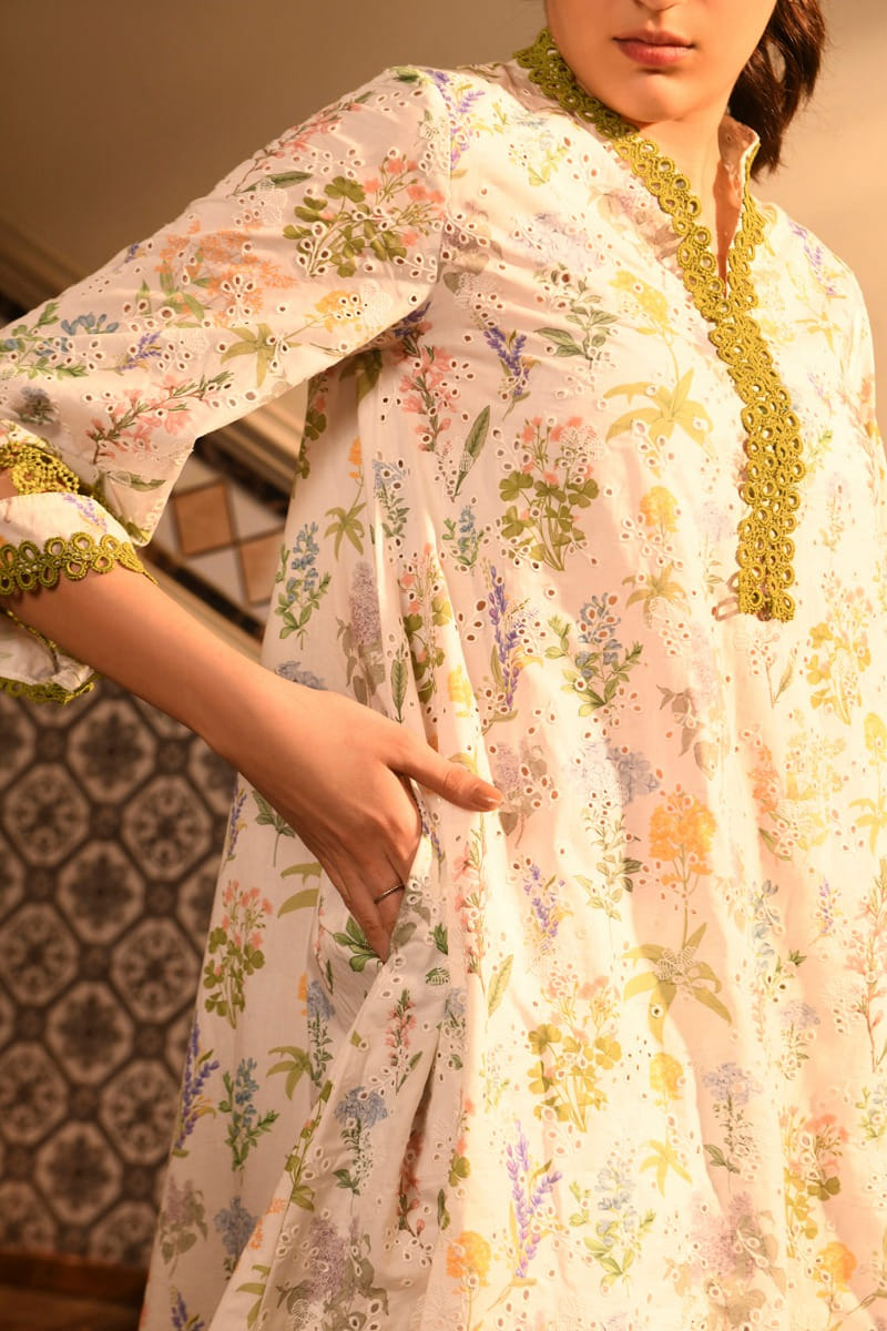 White floral printed embroidery kurta set