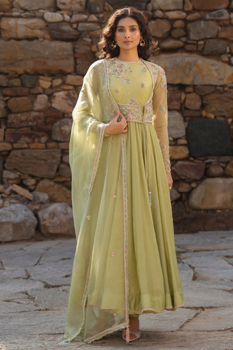 Nepra by Neha Goel designs a masterpiece with this kundan polki choker accented with enamel and danglers of pearl and emerald. Style them with your sarees for a retro look