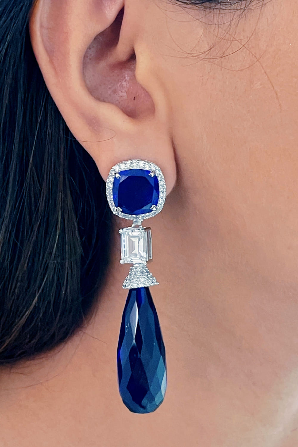 Prerto designs this ethereal pair of danglers in rhodium-polished brass enriched with crystals and dainty embellishments. Style them with an off-shoulder gown to be the belle of the ball.