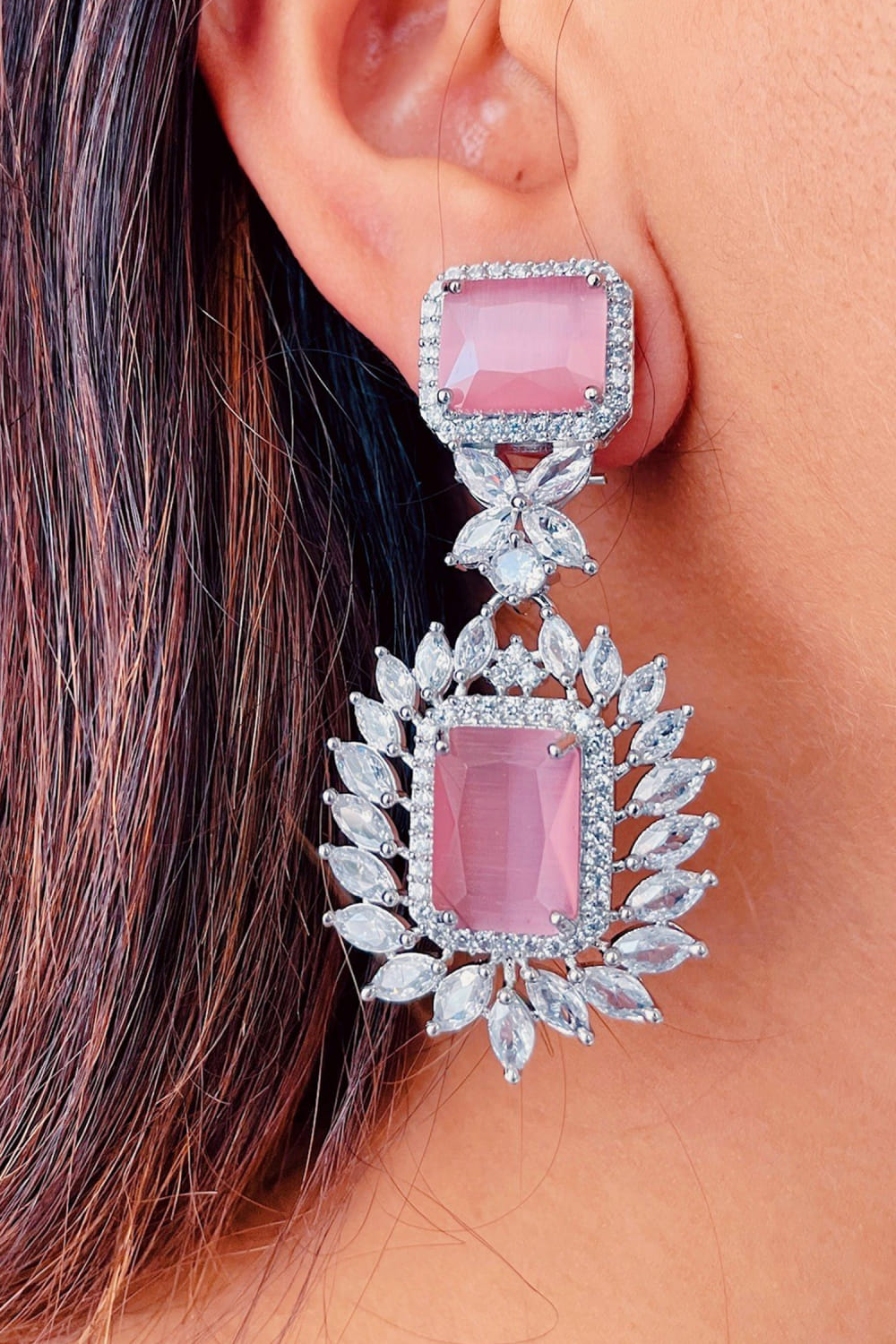 Pink semi-precious stone embellished earrings