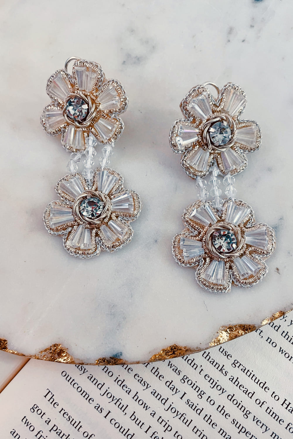 White floral dangler earrings